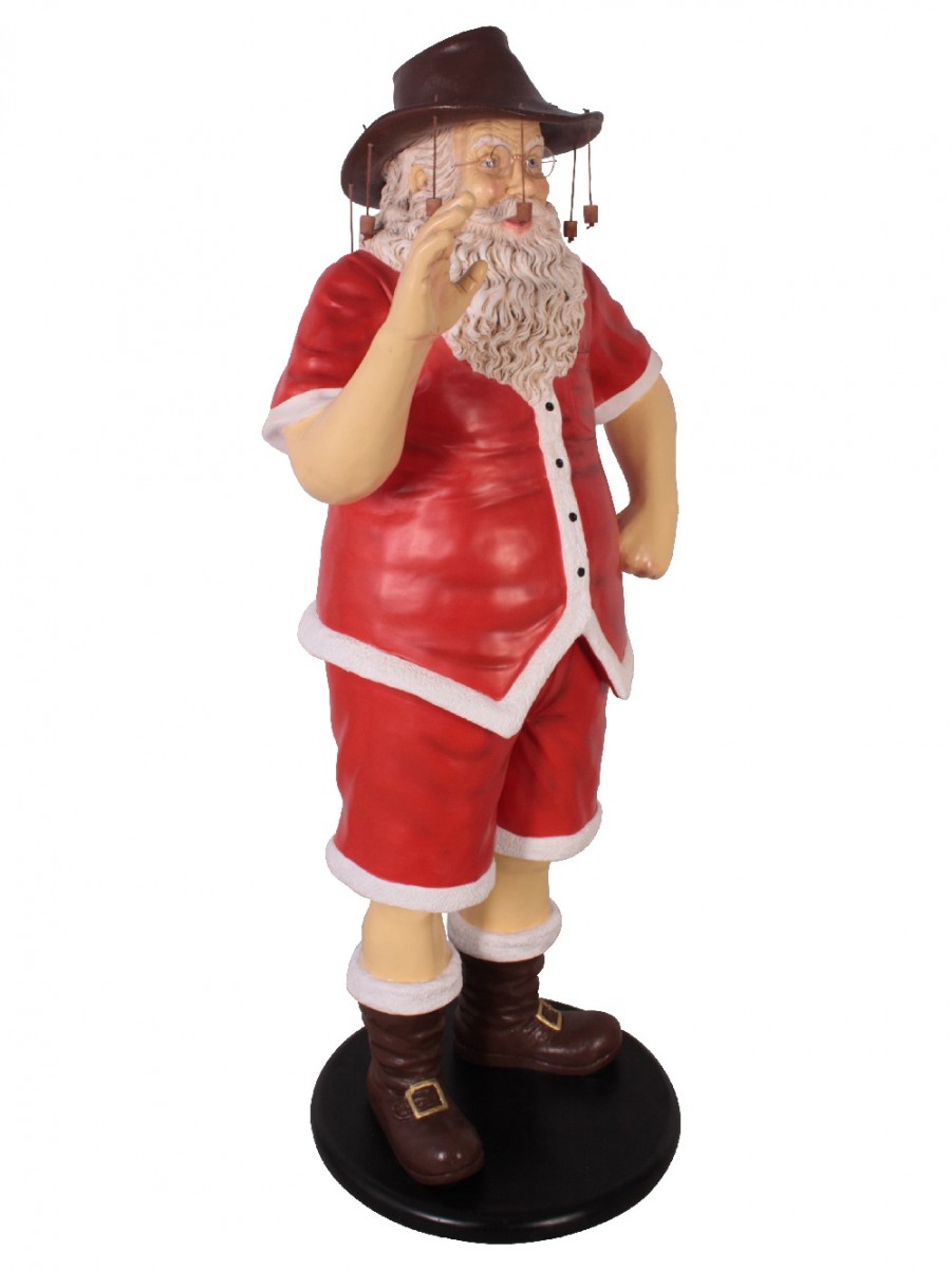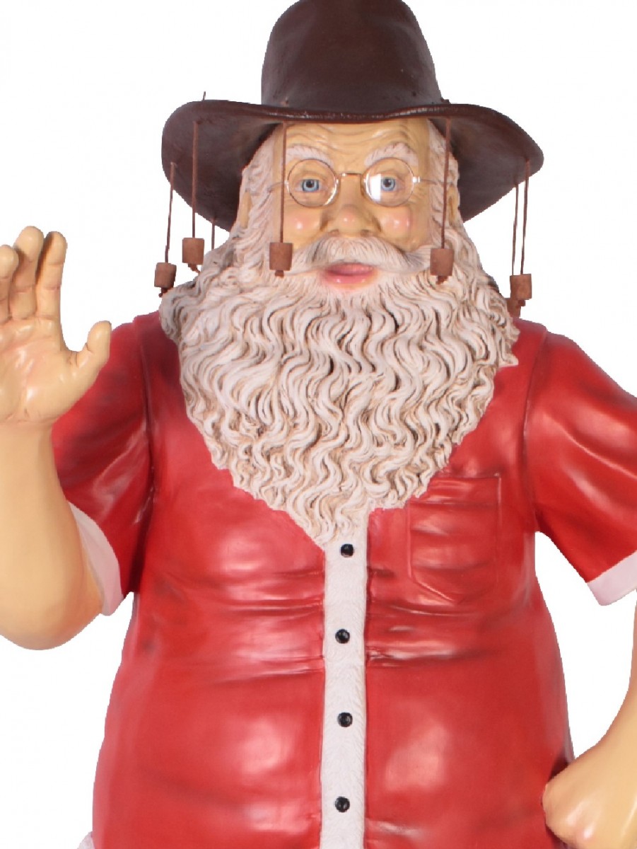 The Fair Dinkum Aussie Swagman Life Size Santa Resin Decor Ornament depicts Santa in a special Australian way that would appeal to the decorative inclination of your family members, friends, colleagues, neighbours, and every loved one who comes visiting this Xmas. It is a life sized Santa ornament that measures a whopping 1.7 centimetres tall! Santa is depicted glad, jolly, and ready to dance to those Christmas tunes your love to sing.