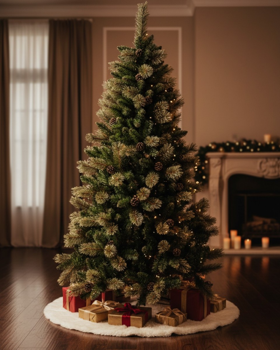 Forget the mess of real needles with this investment-grade permanent tree. It comes pre-decorated with 43 soft glittered faux pine cones, adding a layer of authentic woodland texture to your festive lounge room. The professional-grade hinged branches drop into place effortlessly, significantly reducing setup time. This easy-to-fluff design ensures you spend less time on assembly and more time enjoying the decorating process with family