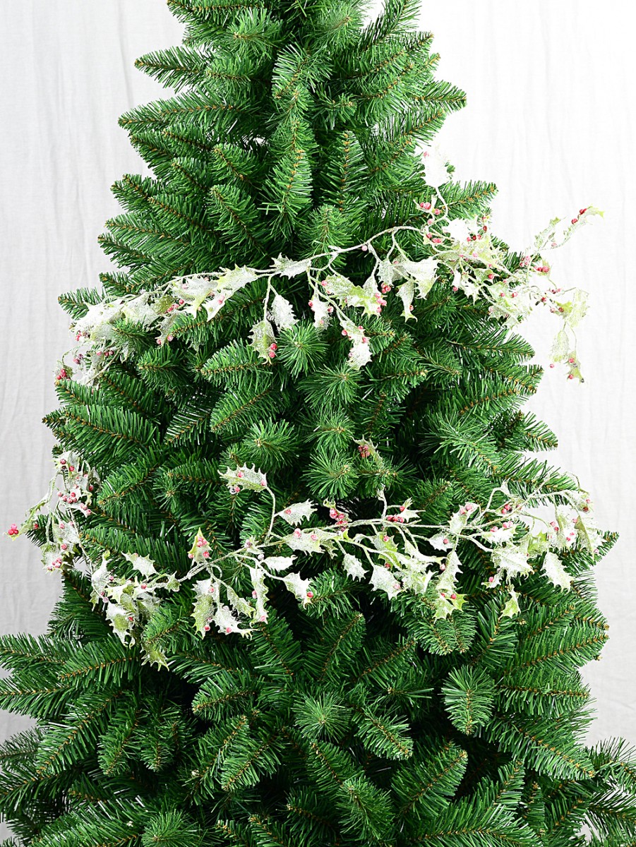 Showcase a proclivity for panache and uncanny decorative insight this Xmas when you creatively decorate your home and office with this Frosted Holly Leaf & Berry Garland. This garland of beautiful flowers has a frosted look with several white and green coloured flowers all attached to a thin stem. The end of each tree branch even ends in delicious looking red berries.