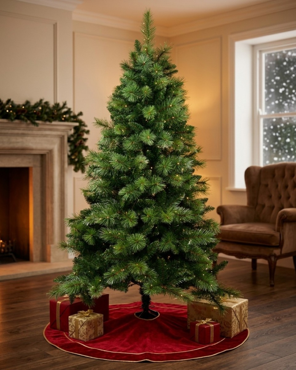 Replicate the natural variety of a forest-grown evergreen without the maintenance of real needles. This investment-grade permanent tree features a unique "Dual Leaf" design, combining soft pine needles with classic fir tips to create a multi-dimensional look that remains vibrant season after season. The professional-grade hinged branches drop into place effortlessly, making the setup of this 1.8m tree quick and stress-free. This easy-to-fluff design ensures you spend less time on assembly and more time on the creative joy of decorating
