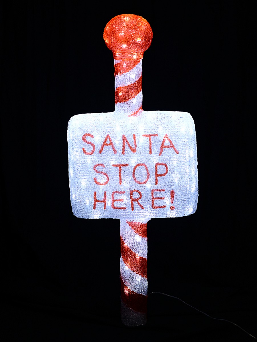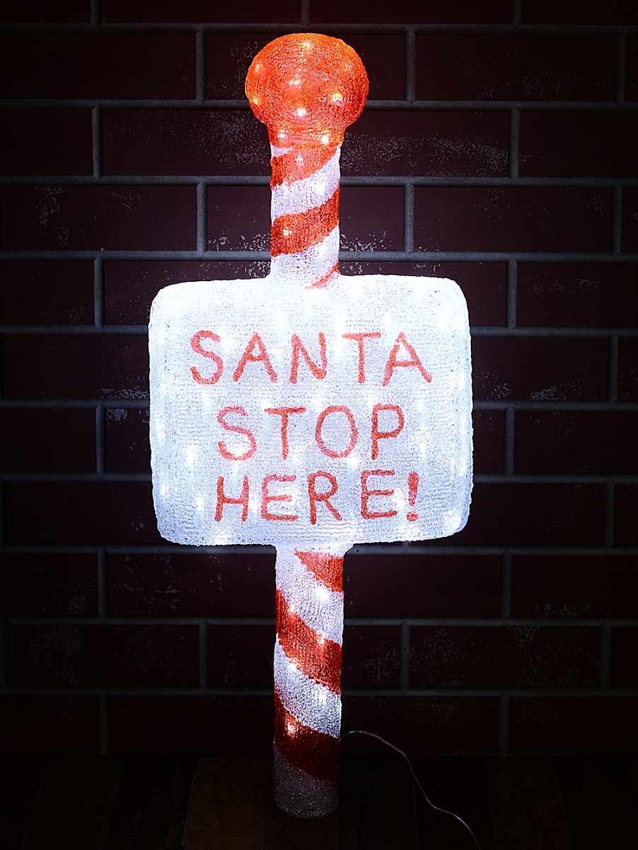 1m Acrylic SANTA STOP HERE! & Cool White LED Garden Stake Light Display