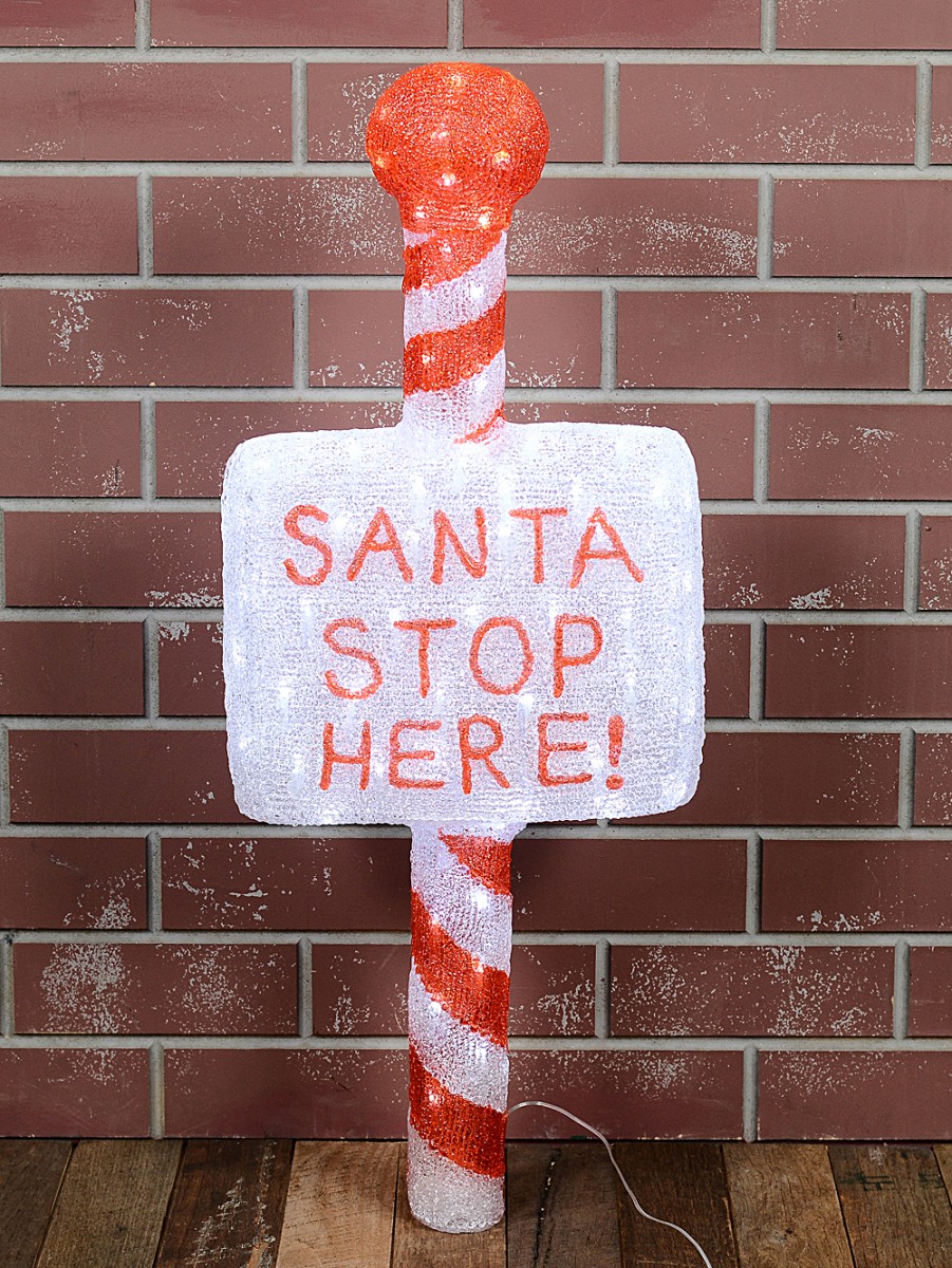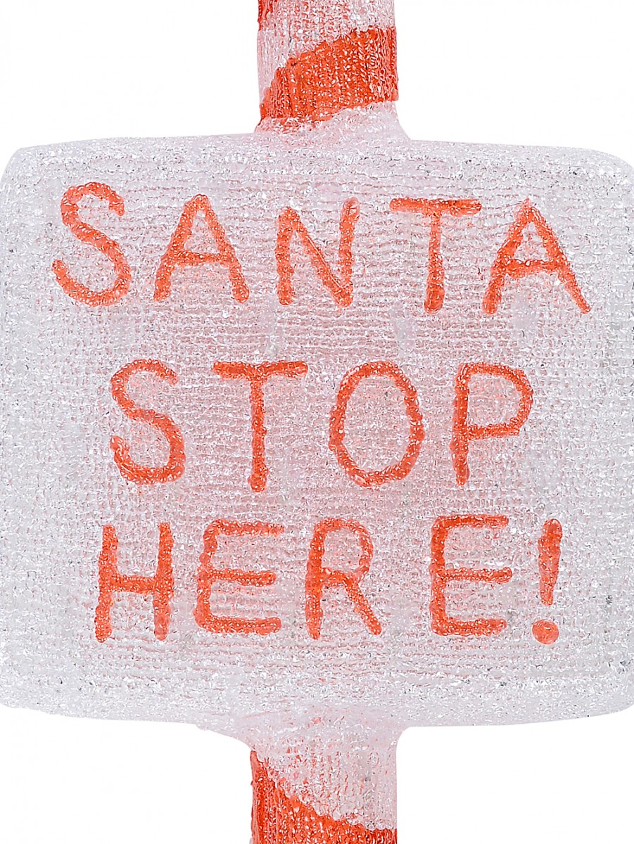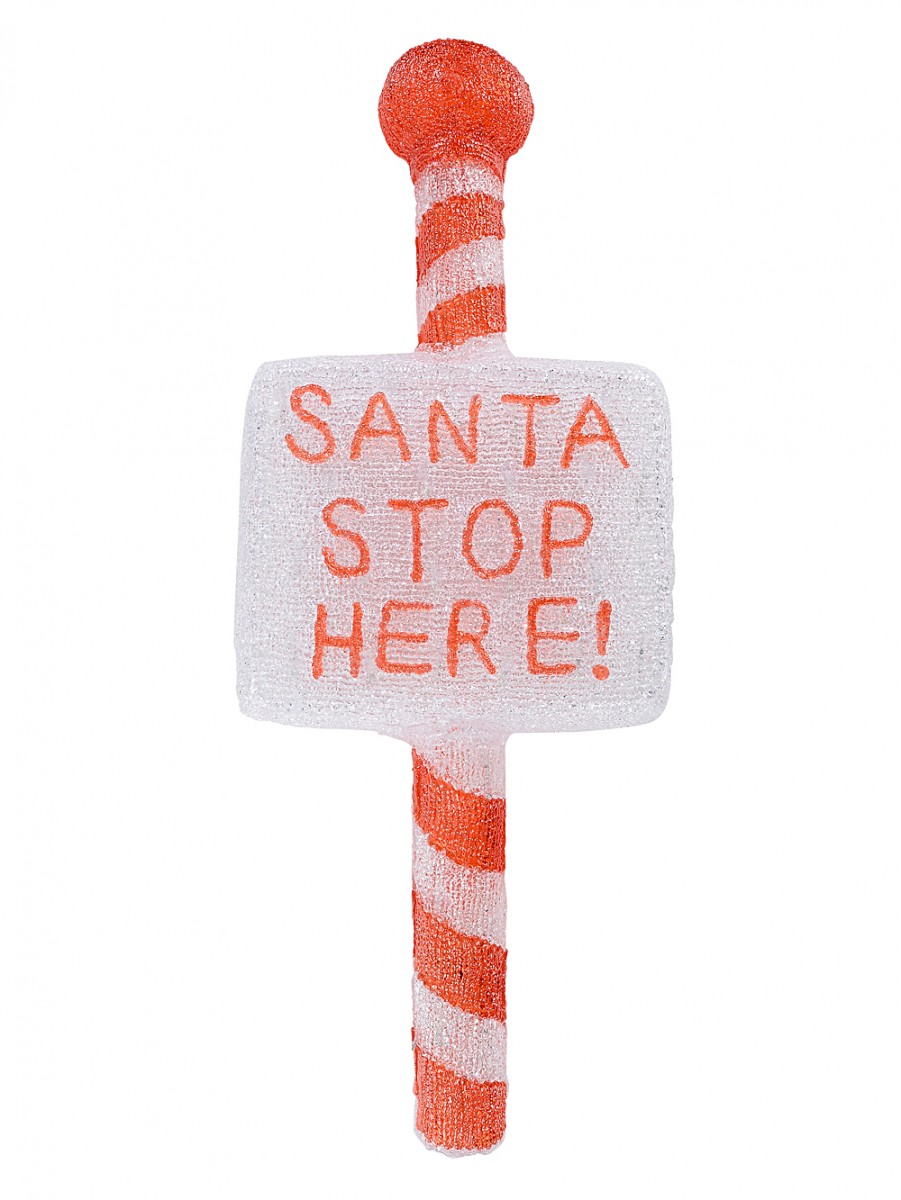 Features red ' SANTA STOP HERE! ' text with red diagonal stripe on pole & solid red pole cap
