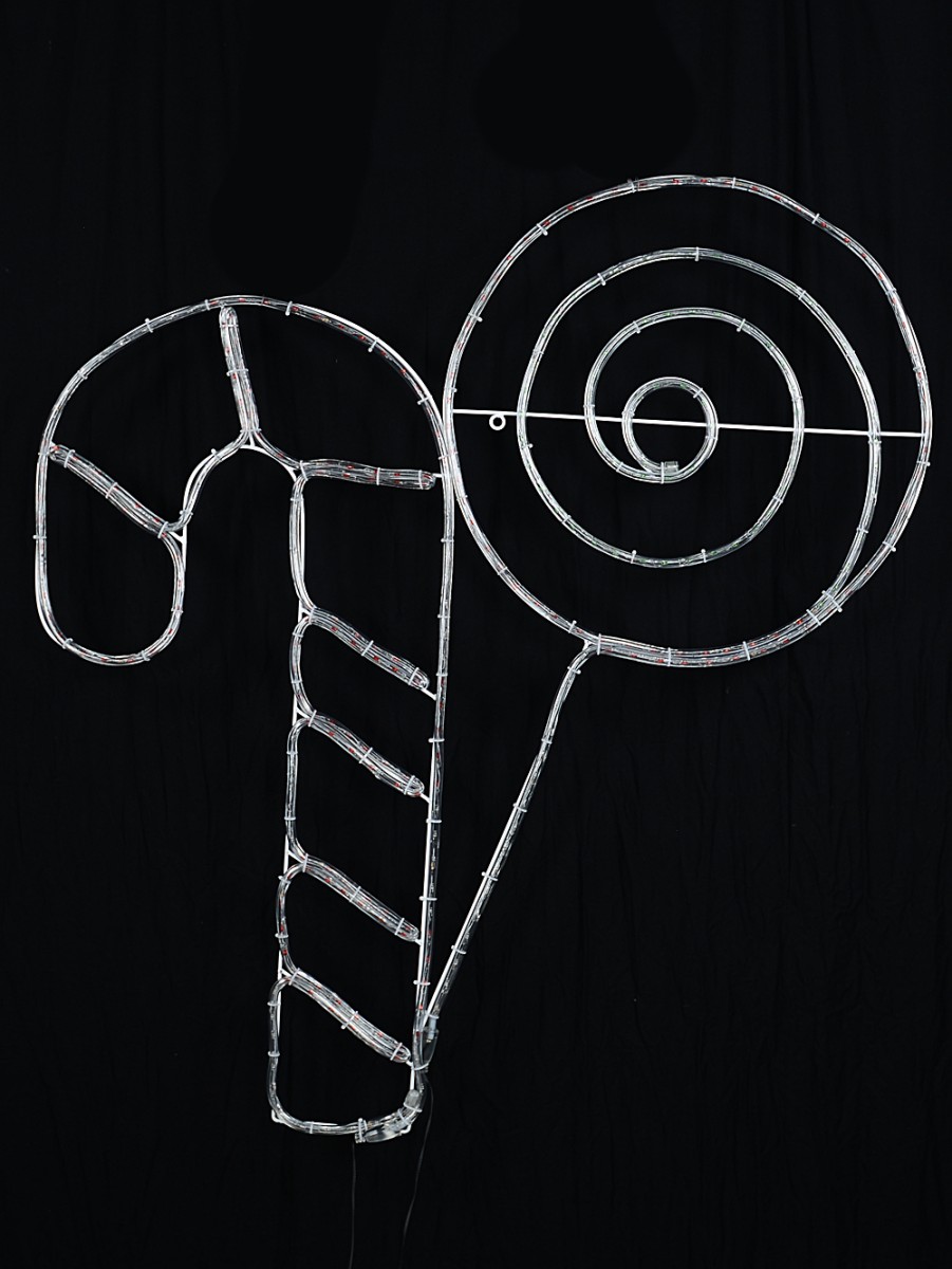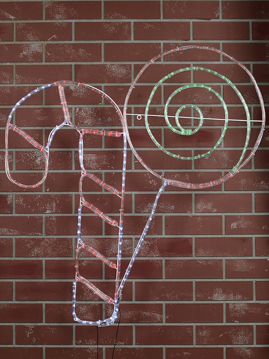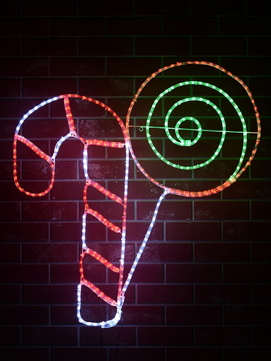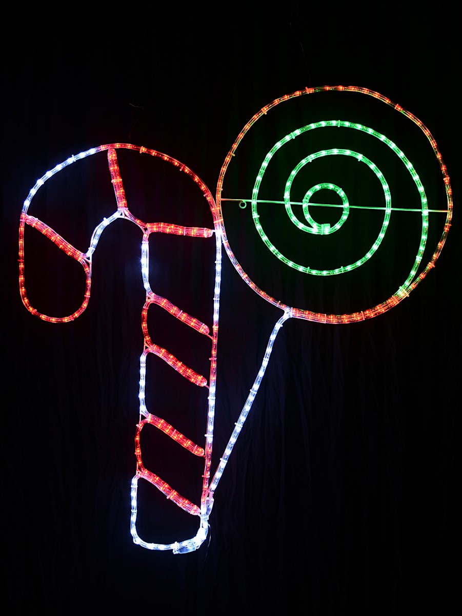 The vibrant silhouette, featuring a classic candy cane and a whimsical lollipop, is sure to be a standout piece in your holiday decor. Illuminated with a stunning blend of colours, the candy cane boasts striking red and cool white stripes, while the lollipop dazzles with its flashing red design accompanied by a delightful green swirl and a cool white stick. These cheerful hues are perfectly suited to complement various holiday themes, ensuring that this piece becomes a favourite in your seasonal collection.
