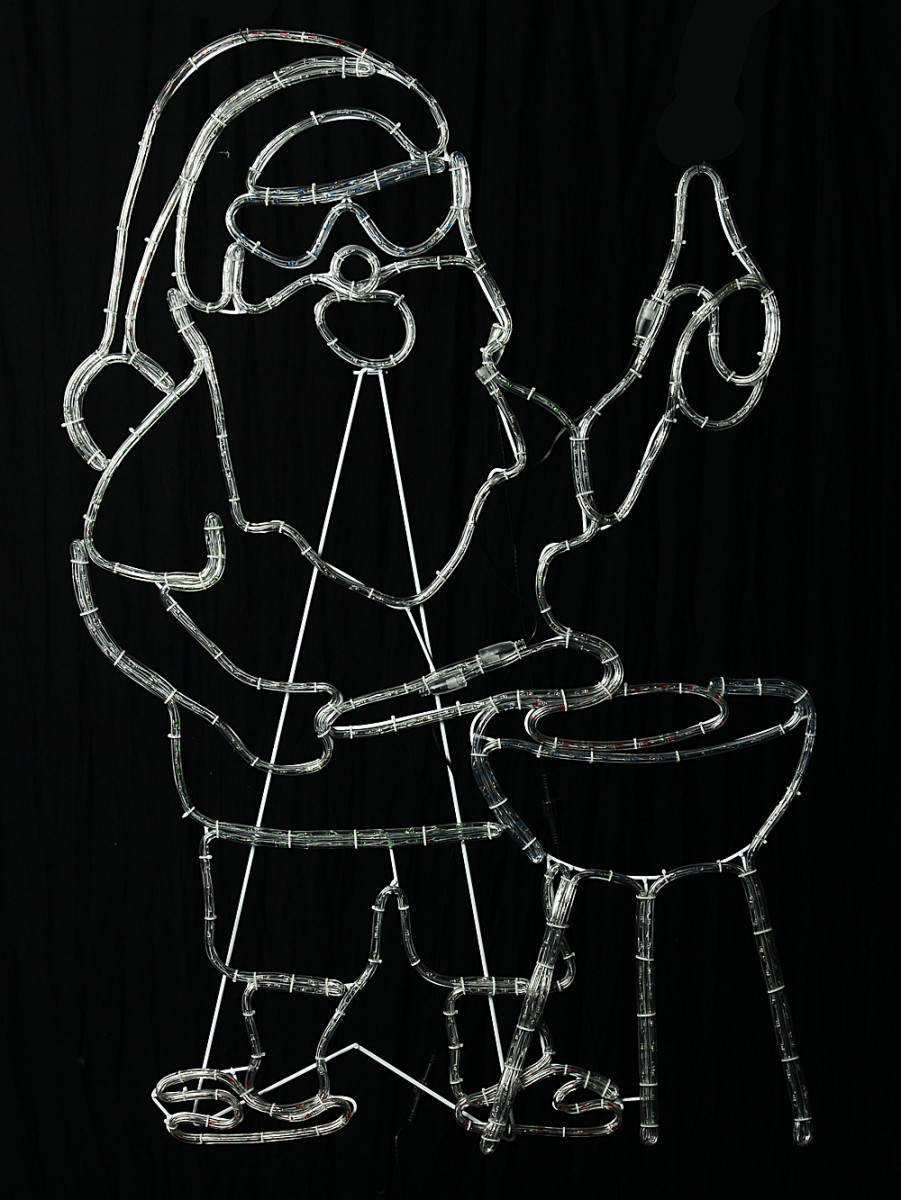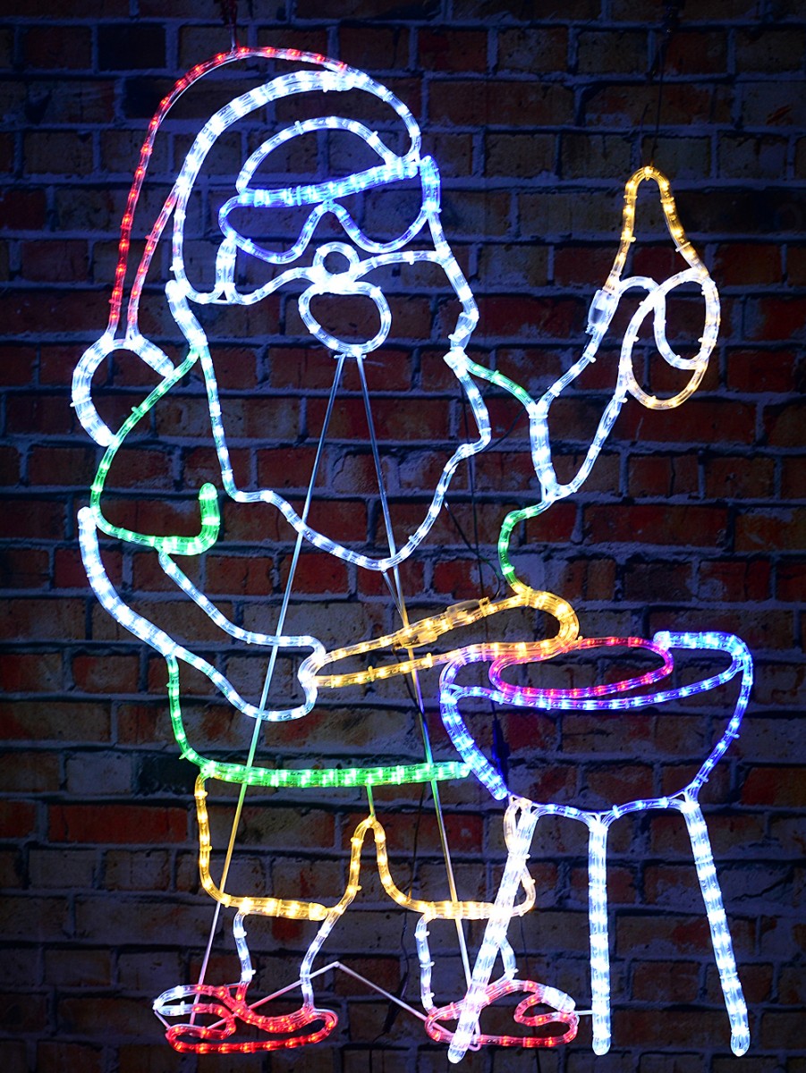 It�s not just that Santa�s looking ready to relax under the cool white and warm white LED bulbs, it�s the fact this motif has 588 concave bulbs in clear rope tube. The lights shimmer with seven flash speeds (or you can keep it on static) and there�s even flashing tongs and bottle if you want him to really ham it up. The whole 79cm x 1.2m frame is sturdily mounted so there�s no worry he�ll topple while cheering you on. We�ve made sure it suits outdoor or indoor use too, with an extra-long black lead wire casing (a full five metres) so it can reach any corner of your garden or home. Colourful red thongs and festive green shirt? Absolutely - they really pop alongside that blue BBQ. There�s nothing quite like it to spread some Aussie holiday magic.