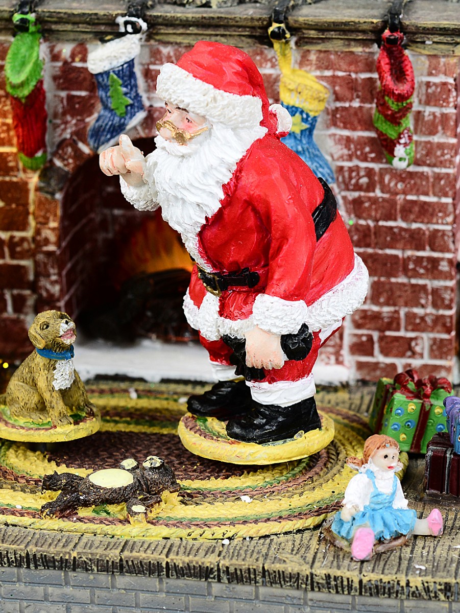 Watch as Santa shushes a very excited little puppy, with both figures rotating to face each other and then to the front, adding a touch of whimsical animation to your display. The realistic fireplace, with stockings hanging from the mantle and an always-ready stack of logs, features an illuminating effect that changes colour, mimicking a cosy, burning fire. This attention to detail creates an inviting atmosphere that enhances the beauty of your holiday decor.