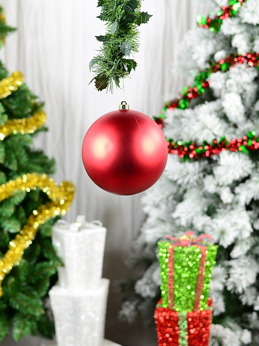 Measuring a huge 20cm across, this gleaming bauble should delight guests and family members of all ages. Painted with an extraordinary red metallic gloss finish, this bauble catches the light from all angles, giving it a shimmer that's impossible to ignore. Nestle it among the flashing lights of the Christmas tree, or hang it from a softly lit door frame or mantelpiece -- this bauble will add that touch of colour regardless of where it's placed. The decoration comes with its own robust hanging cord, ensuring that it can be mounted quickly and safely almost anywhere you'd like. The hanging cord is a glorious wreath-like texture in appearance, and looks just the part when paired with this large bauble. This bauble is so artfully designed that you won't be able to help yourself from smiling when you unpack it. And its finish is so stunningly glossy that you'll be able to see your grin reflected in it! Don't let your Christmas decorations languish without an eye-catching centrepiece. This large glossy red bauble is likely to attract oohs and arhs from all around and is a must-have addition to any family's decorations.