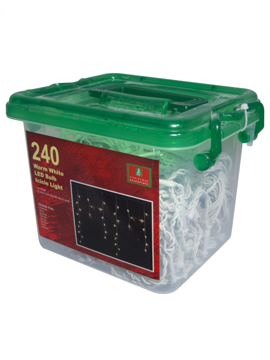 240 super bright white lights are strung at varying lengths to create the effect of icicles. Hang them anywhere in trees or hedges, on a fence or along the front of your home. Wire casing is white so it virtually disappears when lights are turned on.