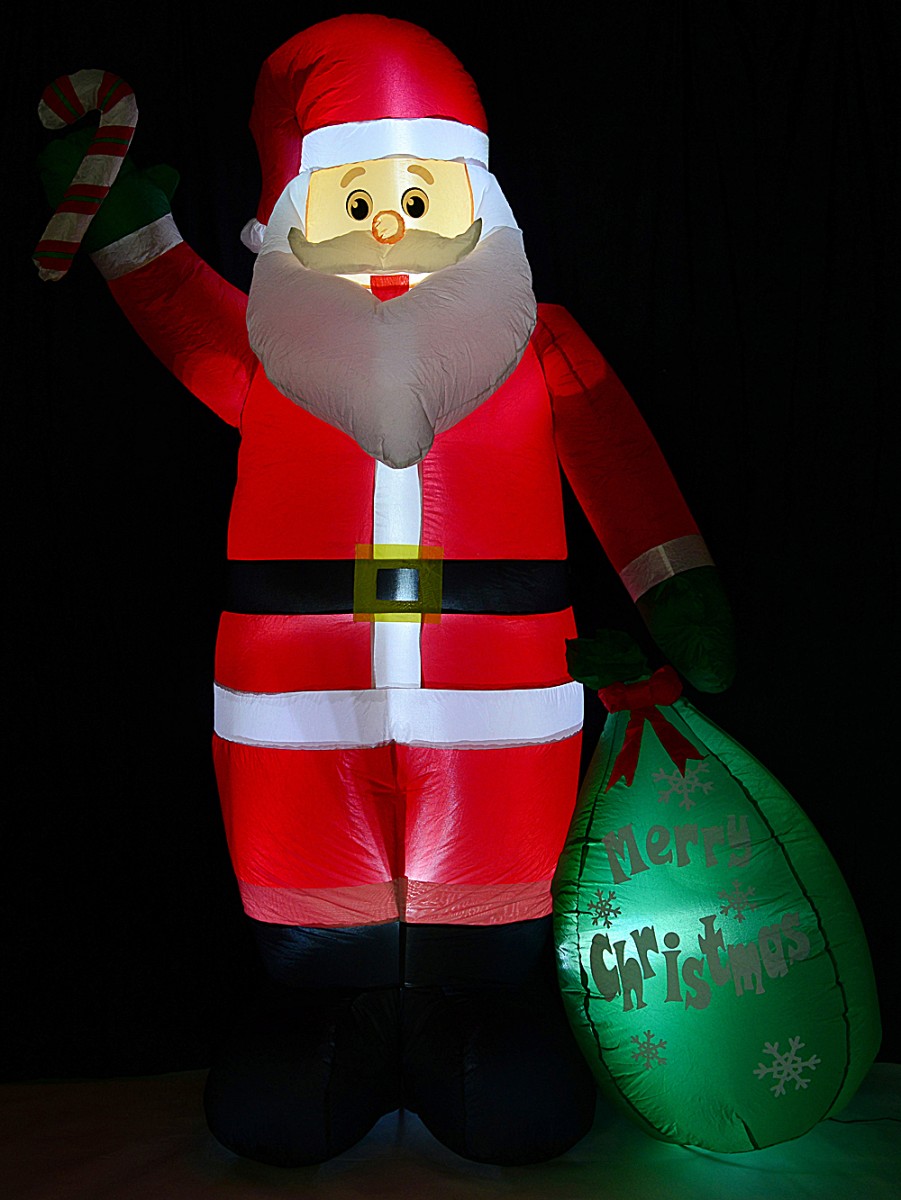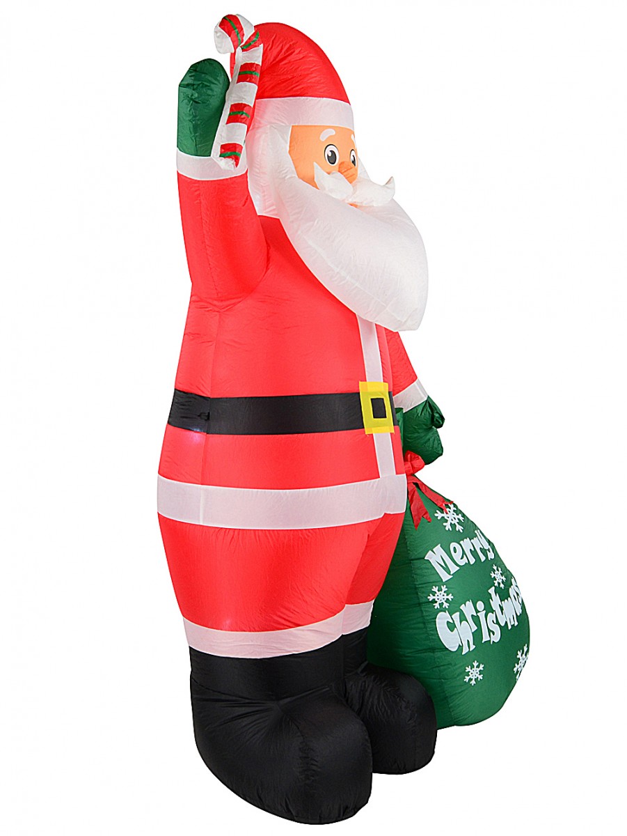 This is one of those decorations that just hits different, you know? Our 2.4m Santa With Sack & Candy Cane Inflatable is the kind of Christmas decor we all wish we'd had when we were kids. It's larger than life � at 1.6m x 1m x 2.4m, it'll make your front garden look like a scene straight out of a movie. The pop of colour is pure Christmas magic - with Santa's traditional red suit, snowy white beard, green gloves, and a cheery yellow belt buckle. In his hand he's holding a striped candy cane and right next to him sits a giant green sack with �Merry Christmas' on the front in big bold letters.