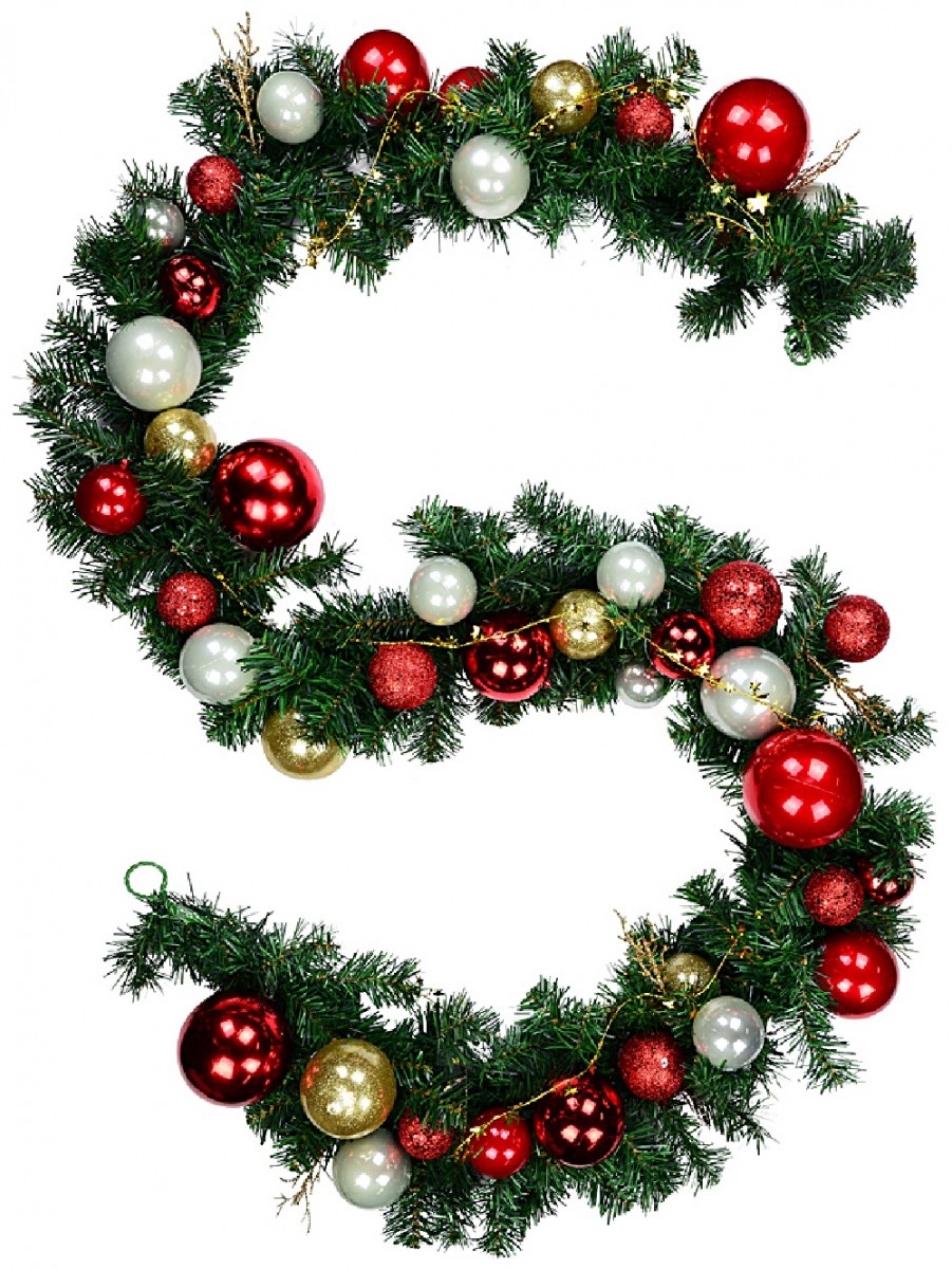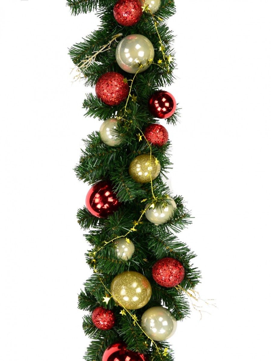 The metallic sheen of the baubles make this pre-decorated garland a fantastic home decoration piece. Classy and elegant, it will fit right in with the decorative scheme of any chic soiree. Set your table with your finest tablecloth and napkins and let your beautiful garland shine. Pre-decorated strands of garland are the easiest, quickest and most beautiful way to create Christmas cheer in your home. The Christmas Warehouse has this breathtaking red and gold strand, and an additional wide variety of pre-decked garland. Find the best decorations for your home at the Christmas Warehouse.