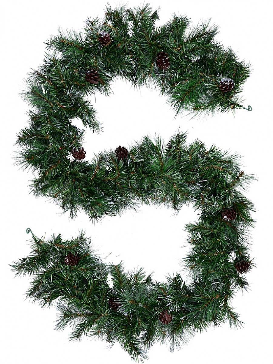 A holiday essential for your festive decorations this Christmas, the lush green foliage with slightly frosted pine cones will give a natural touch and a charming finish to the Yuletide decor. Since the realistic green needles of the garland imitate those of a Christmas tree, they will be perfect for camouflaging the light wires around the tree, making the decorations look natural and sophisticated. The silver glitter on the tips gives this garland a magical touch of winter as it twinkles in the sun in daylight and shimmers in the dark of the night!