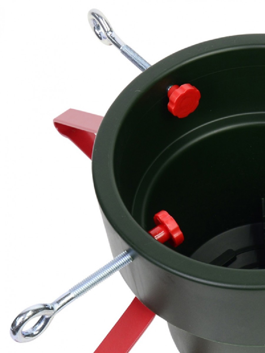 This sturdy stand gives the necessary support with its unique design that has push stabilizing bolts which slide into a socket to secure the tree trunk keeping it upright at all times. It is strong yet lightweight and easy to store and also quick to install. Simply place the tree in the water tank of the metal stand and bolt the speed nuts to the tree turning them till they fit snugly around the tree giving 360-degree support! The four-legged spread out metal base is solid enough to carry the weight of the tree.