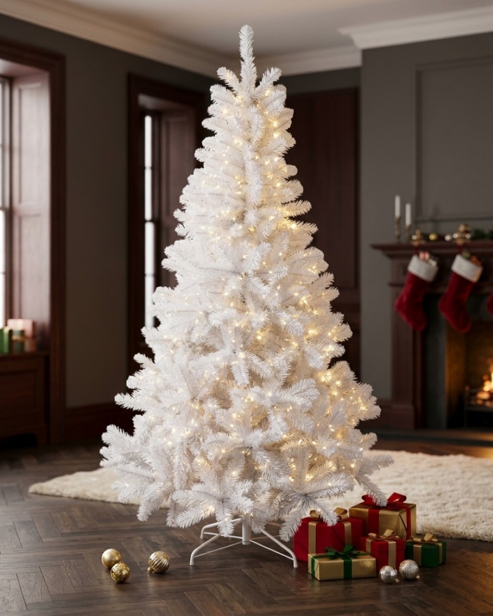 Enjoy the classic texture of a traditional fir in a brilliant white finish that remains pristine season after season. This investment-grade permanent tree features a consistent, pure white colour across all 770 tips, ensuring a high-end look from every angle. The professional-grade hinged branches drop into place effortlessly, making the setup of this 2m tree quick and stress-free. This easy-to-fluff design ensures you spend less time on assembly and more time on the creative joy of decorating