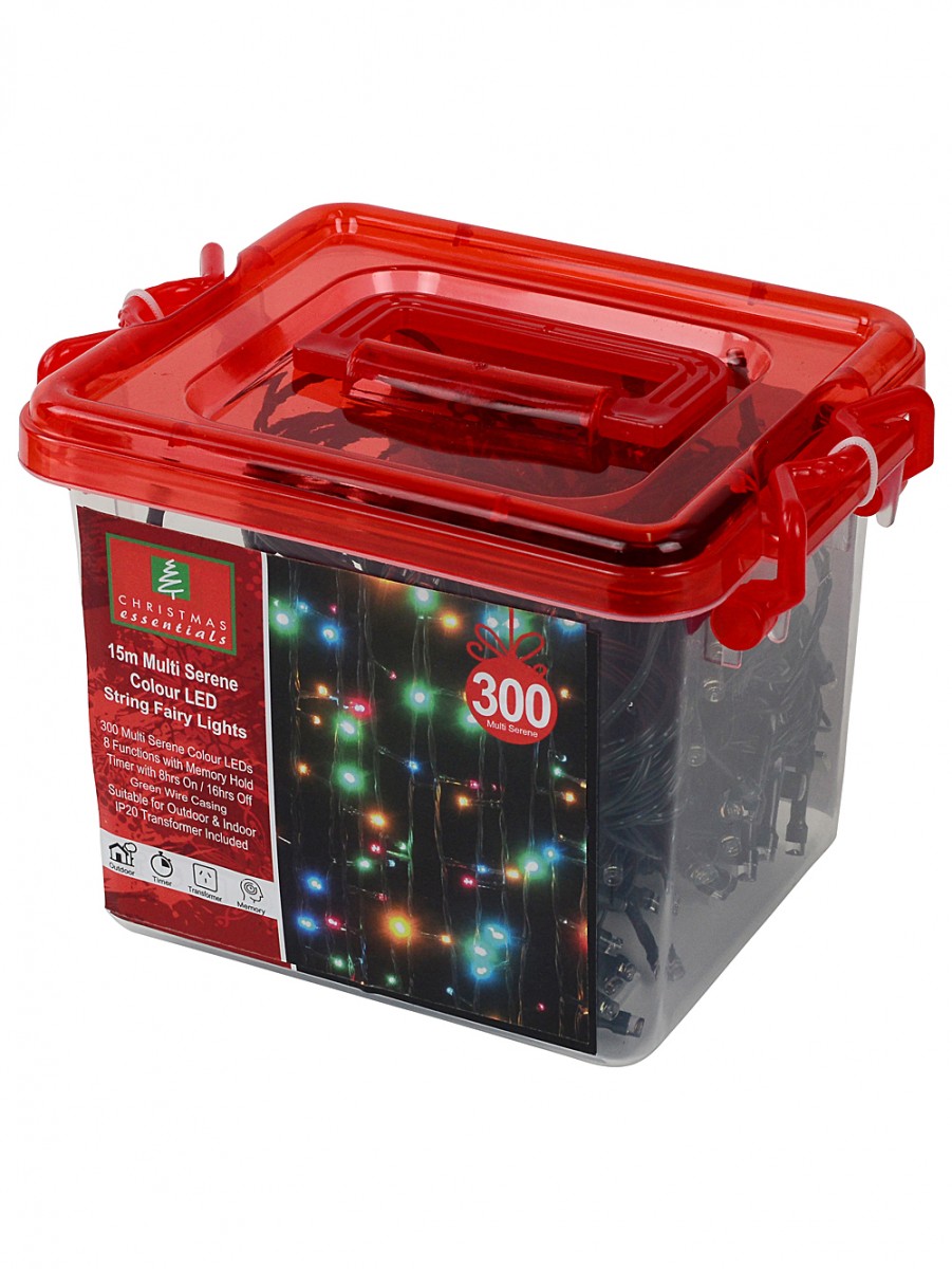 We think this is an absolute Christmas classic. Our 300 Multi Serene LED String Fairy Light - now this is how to do Christmas lights! Each light sits just right and gives off a gorgeous glow in serene multi colours of green, azure blue, red and orange. The string spans a whopping 15m with 5m of lead and a convenient 50mm bulb spacing, and you�re getting the full package: built-in timer, memory hold function (saves your favourite setting), eight beautiful lighting effects from twinkle to slow fade, a transformer with control button for the effects, and 300 perfectly placed concave LED bulbs. We love these for indoor or outdoor use - just remember the IP20 transformer needs to stay inside. They�re perfect draped round your tree, or hanging along balconies and fences. There�s something about these lights that reminds us of family Christmases when we were kids - we can�t get enough. Beautiful, classic, festive - this set will see you through years of merry making!