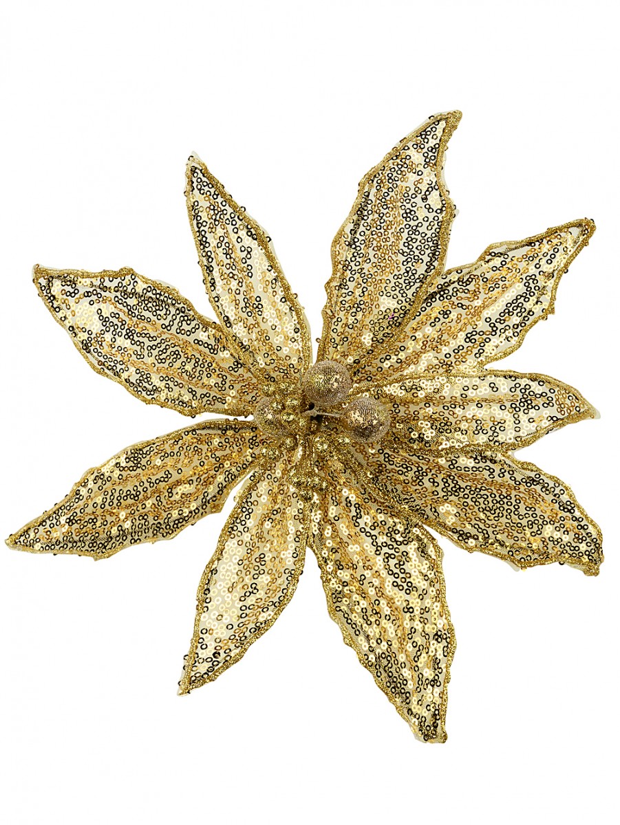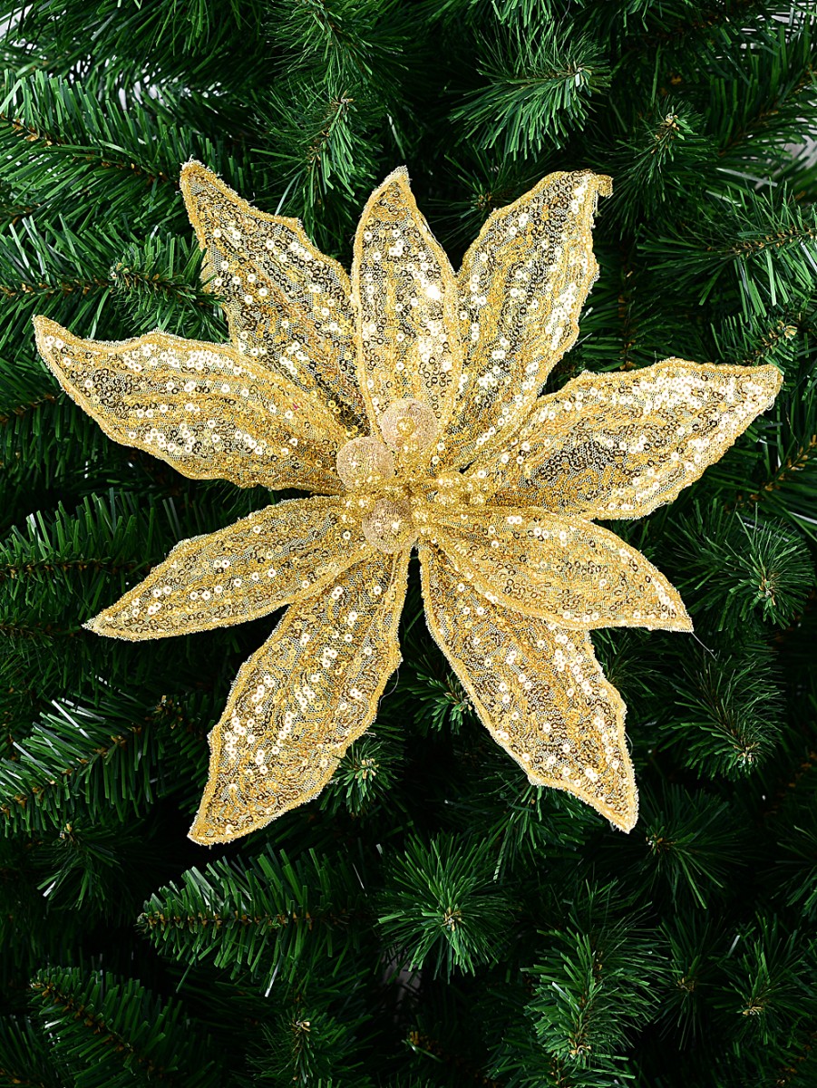 Attaching these couldn't be easier. There's an alligator clip right on the 15cm stem, so you'll find these slot in perfectly with other flowers and trimmings on trees, garlands or table centrepieces - wherever you want to spread some shimmer. They're also really impressive at a festive lunch as napkin holders! And don't worry if you see a bit of sequin or glitter dropping when unpacking and sprucing (we've noticed it too) - it's totally normal with these highly detailed flowers.