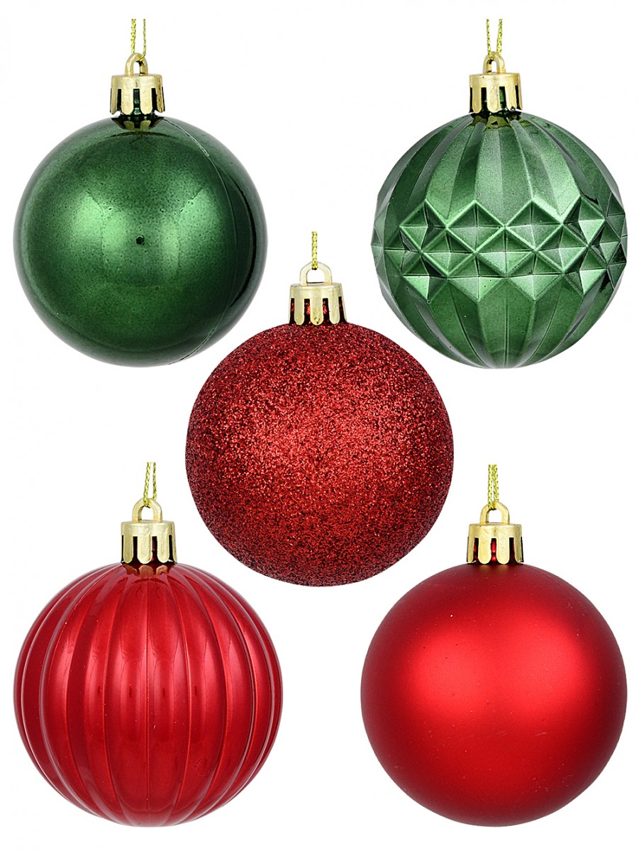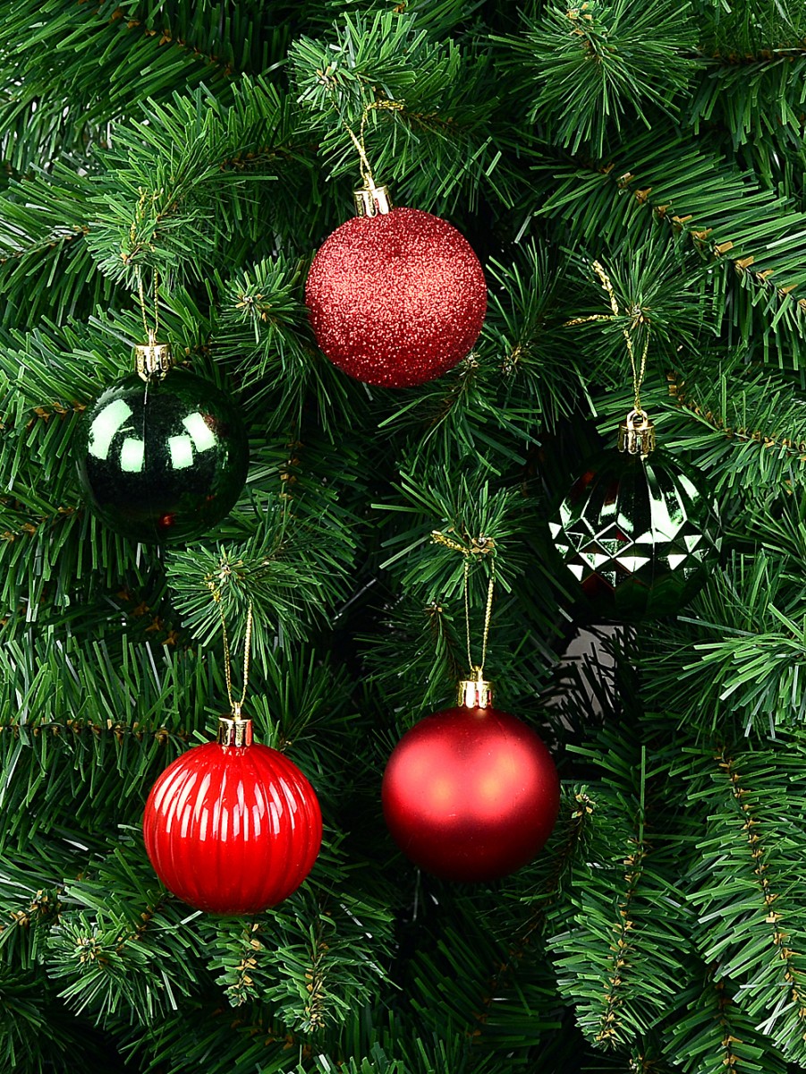 You get seven of each style - pearlescent red with those beautiful pumpkin lines, plain matte red (a real classic), red glitter (the sparkle is just wow), shiny geometric green baubles (those facets are mesmerising), and some simple, glossy green balls for balance. If we had to be honest with ourselves�we like them all equally. As each one is crafted to be shatterproof, there's no need to worry about breakages during the excitement of decorating with the kids or pets around.