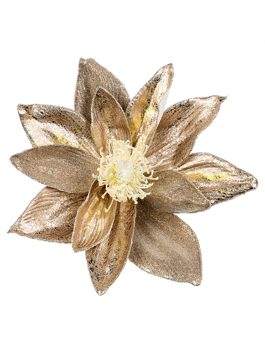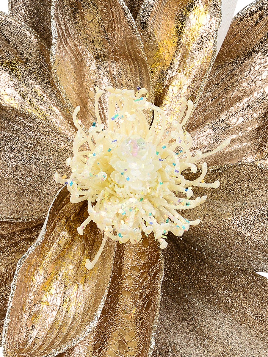 These magnolia picks are pretty big too - measuring around 36cm across and 18cm high - so they'll stand out no matter where they're placed. Great for trees, wreaths and even centrepieces. Each flower has several petal styles, including this amazing textured netting vein and a bit of gold distressing that catches the light beautifully. Wired petals let you adjust the flower shape easily, while the white centre with iridescent glitter and sequins is pure Christmas magic. And, if you're anything like us, you probably enjoy a bit of sparkle finding its way on the floor - it is part of the charm!