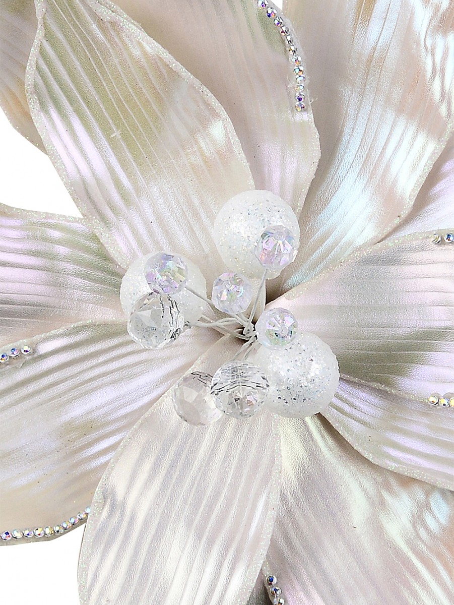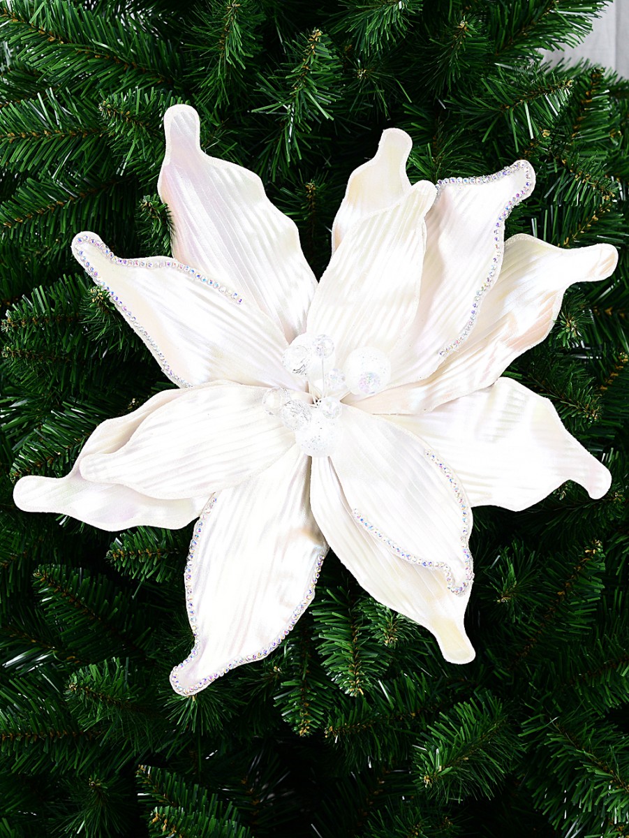 We love how easy it is to spruce - just unpack, fluff up those wired midribs to shape the flower, and use that handy alligator clip to attach it anywhere: trees, wreaths, bouquets - really anywhere you want a bit of sparkle. And it's lovely for all sorts of Christmas decorating: traditional reds and golds or frosty winter whites.