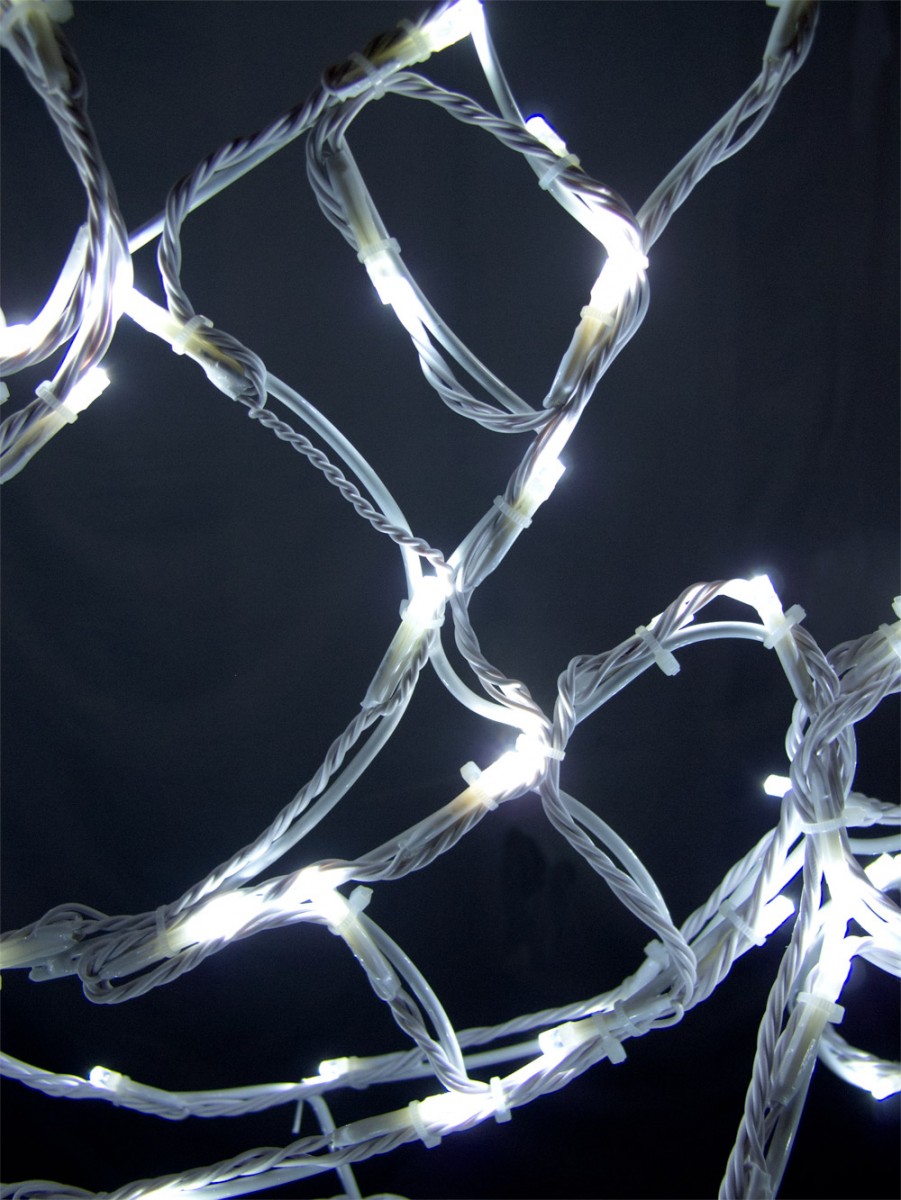 ? Cool white LED lights are safe and outline the figure to create the silhouette. Lights are protected by durable weather resistant housing so ornament can be used both indoors and outdoors.