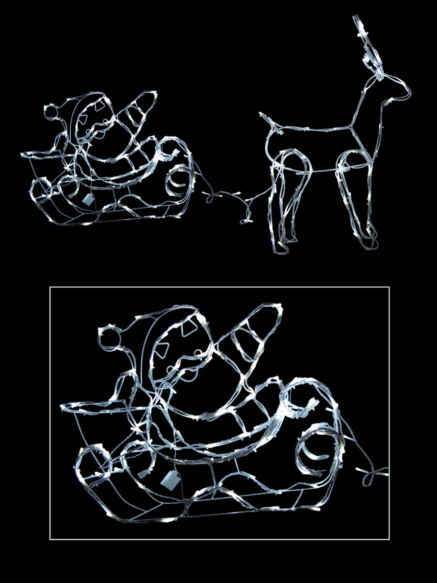 Santa doesn't often arrive without his sleigh as he travels through the wintry night delivering presents to young and old around the world, and wherever his sleigh is you're likely to see his reindeer in their yearly task of guiding Santa's sleigh. Our whimsical Cool White Santa Sleigh and Reindeer is sure to delight children of all ages and remind them to be on their best behavior before the big night!