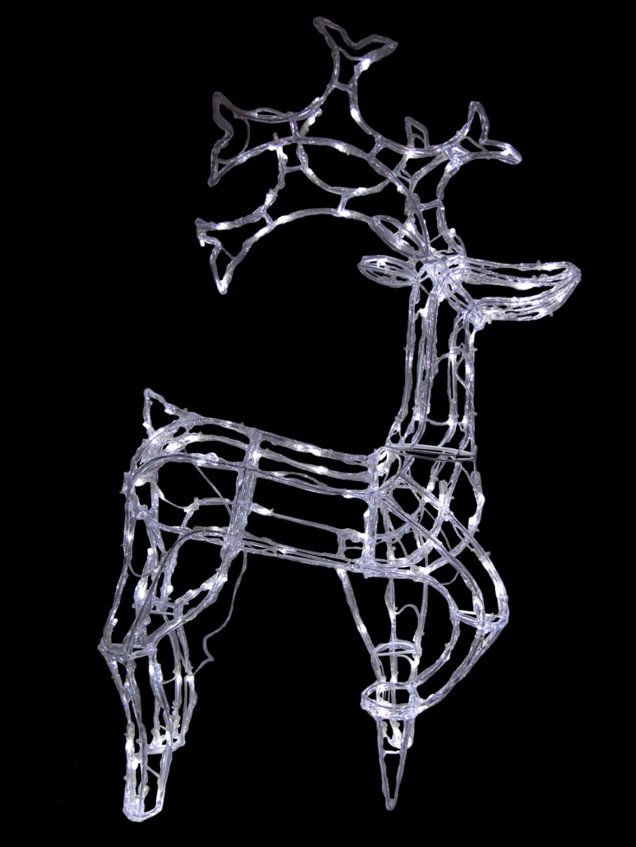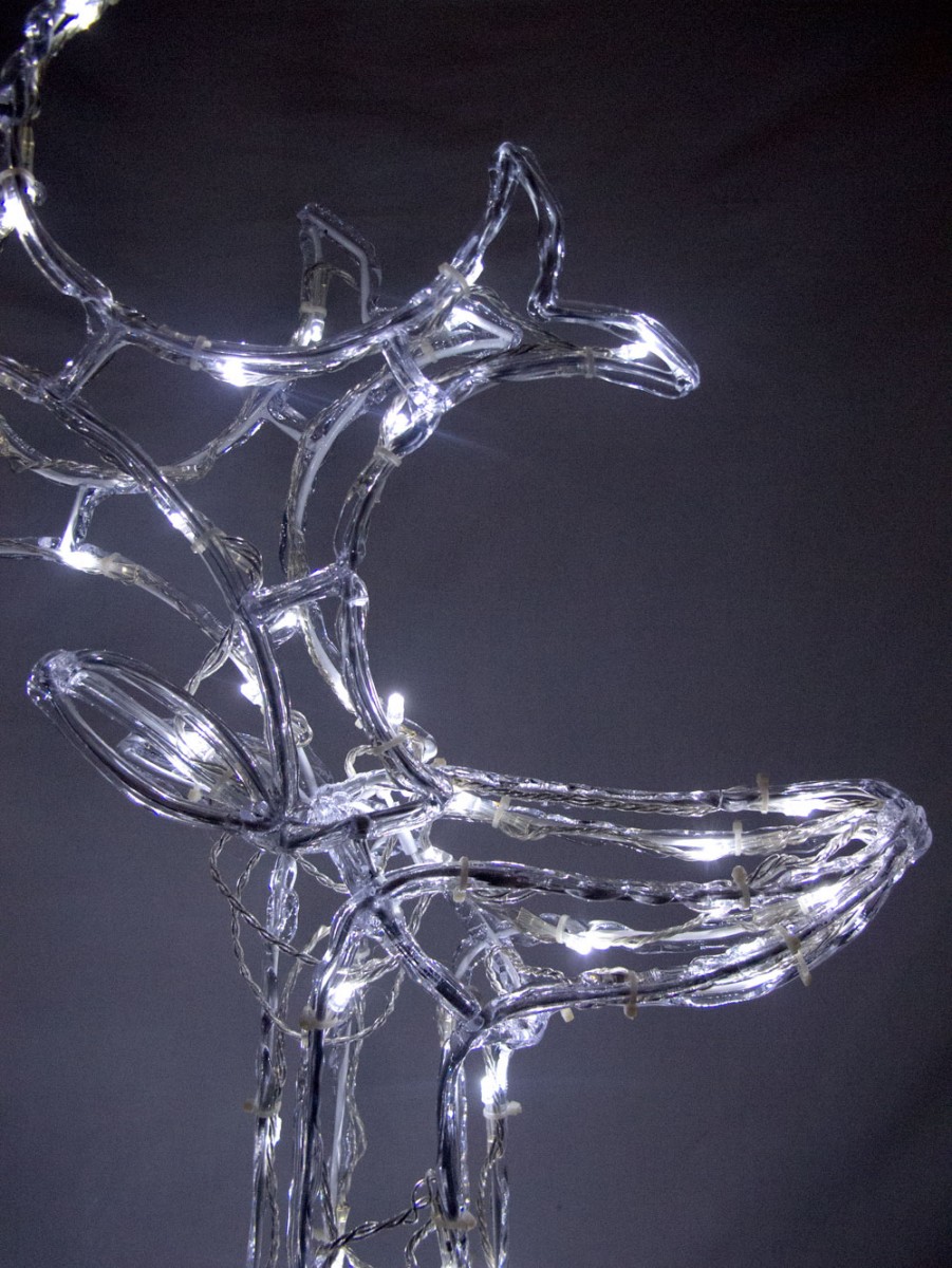 Christmas is one of the most festive times of year, and those who love to decorate with lights often make magnificent displays using all sorts of lighted ornaments. Our beautiful LED Ice-Look Prancing Deer stands a full 1m high so you can group it in a realistic presentation on your lawn. Inserted among foliage, gardens, bushes, trees, and rocks these deer create a lifelike woodland setting. Group it with our Ice Look Standing Deer and add a sleigh and Santa, or combine it with other animals near your Christmas tree. The deer stands with one leg raised at the ready. Rope lights are encased in durable flexible weather resistant plastic tubing with hundreds of LED lights to give the most brilliance available. Can be used indoors or outdoors without the use of extension cords.