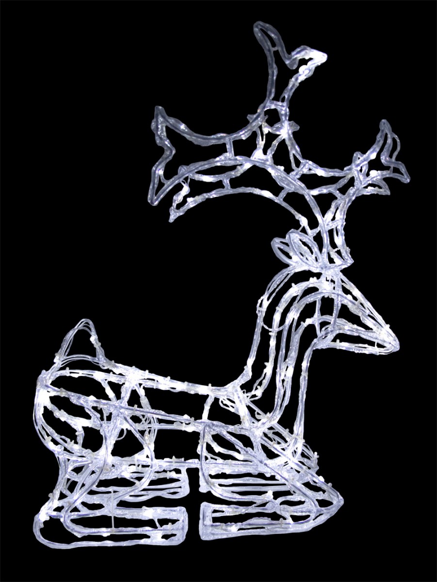 When Christmas is in full swing, holiday lights are evident everywhere on homes, stores, and in town squares, and illuminating your home can be one of the most festive ways to show your Christmas spirit. Our LED Ice-Look Sitting Reindeer has all the features you need in holiday lighting. Tough resilient casing houses hundreds of LED rope lights for long lasting durability. Weather resistant. Sitting reindeer has full set of antlers and upturned face.