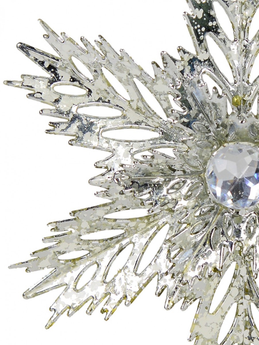 A sleek and gleaming addition to your Christmas tree, this 3D Silver Snowflake comes in a traditional snowflake design and fills your home with wintry, Christmassy cheer! This decoration is designed of two snowflakes, the smaller one over the larger one with a clear crystal gem in the centre to stand out among the rest of your ornaments.