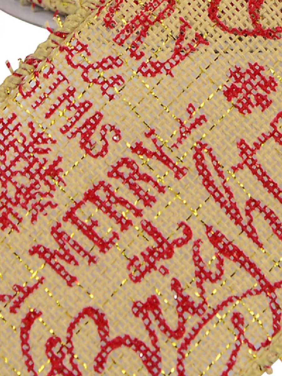 With a length of 3 whole metres, you can engage in more decorative endeavours this Xmas with the use of this natural fabric made ribbon. This wide cut ribbon features an intricately woven natural fabric in honey-orange colour and has various merry words printed in a wide variety of stylish fonts using the colour red. Since red is a dominant colour of Christmas, the choice of red prints makes it perfectly suitable for use this coming Christmas celebration. It features words like "Joyful Christmas Wishes", "Merry and Bright" and "Jolly Christmas" in appealing red print. It is sold individually and you can have it at a fair price.