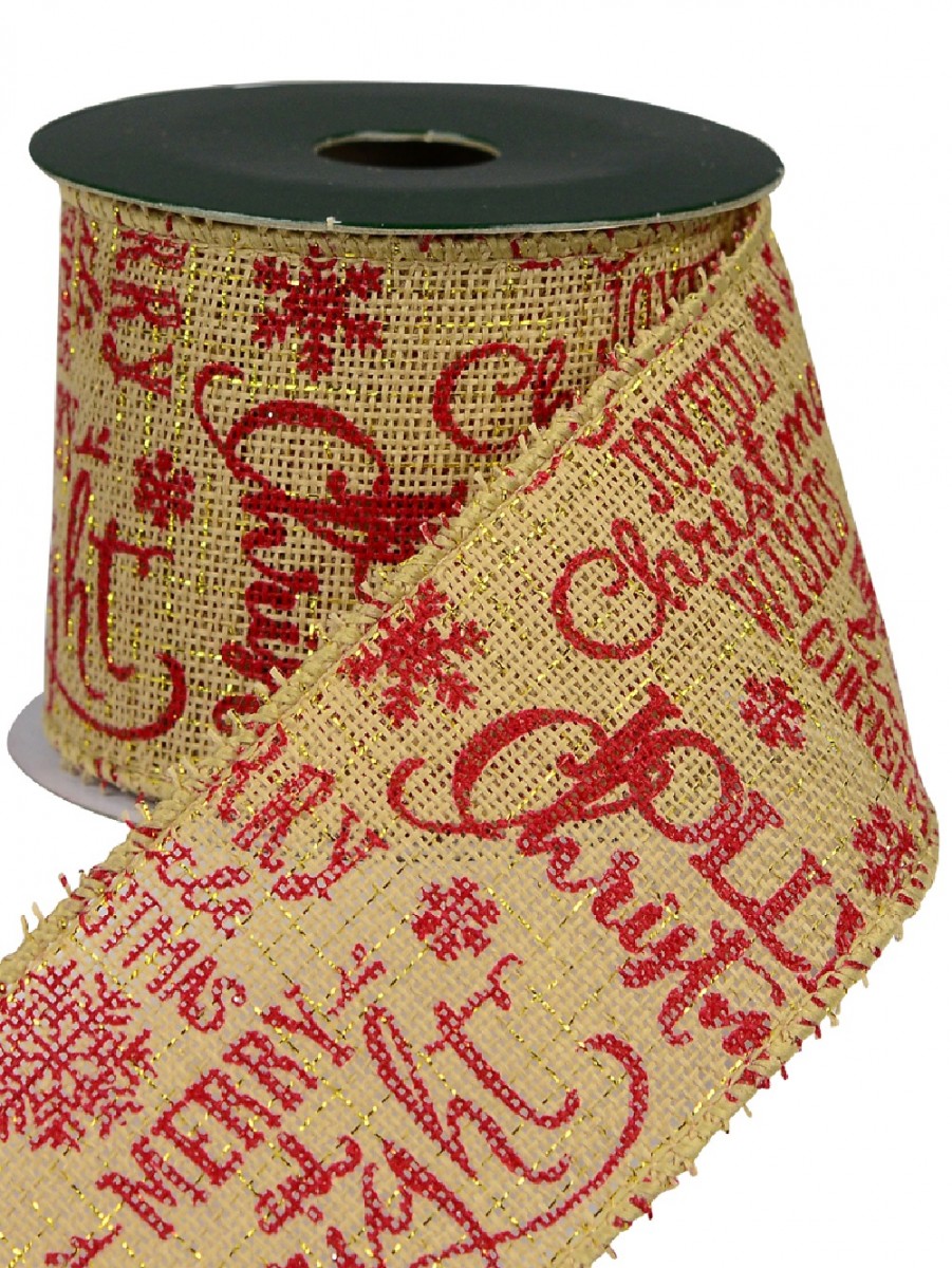 Wrap your gifts and homes in a ball of natural beauty this coming Christmas and other festive seasons with this Natural Ribbon With Red Font & Touch Of Gold. This wide cut ribbon is made from natural fabric with honey-orange colouration and has thin gold fabric sewn into it for a beautiful decorative glitter. To complete it are stylized red coloured words printed on it.