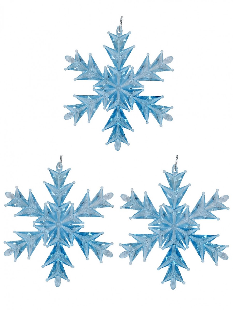Snowflakes have become an inseparable motif often deployed in decorative activities whenever it's that Christmas festive period of this year. This is why you would be taking the right decision in placing your order for as many packs of this Blue Ice Look Refractive Snowflakes Tree Hanging Decorations. Each pack contains three of this snowflake shaped ornaments. Each snowflake ornament figurine is made in a design that measures 11 centimetres in length, 7 millimetres in width, and 11 centimetres in height. Its blue finished design beautifully refracts light depending on how the textured surface is angled towards or away from light.