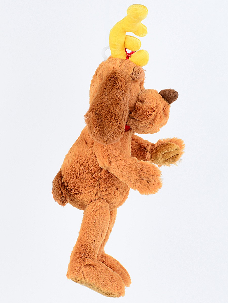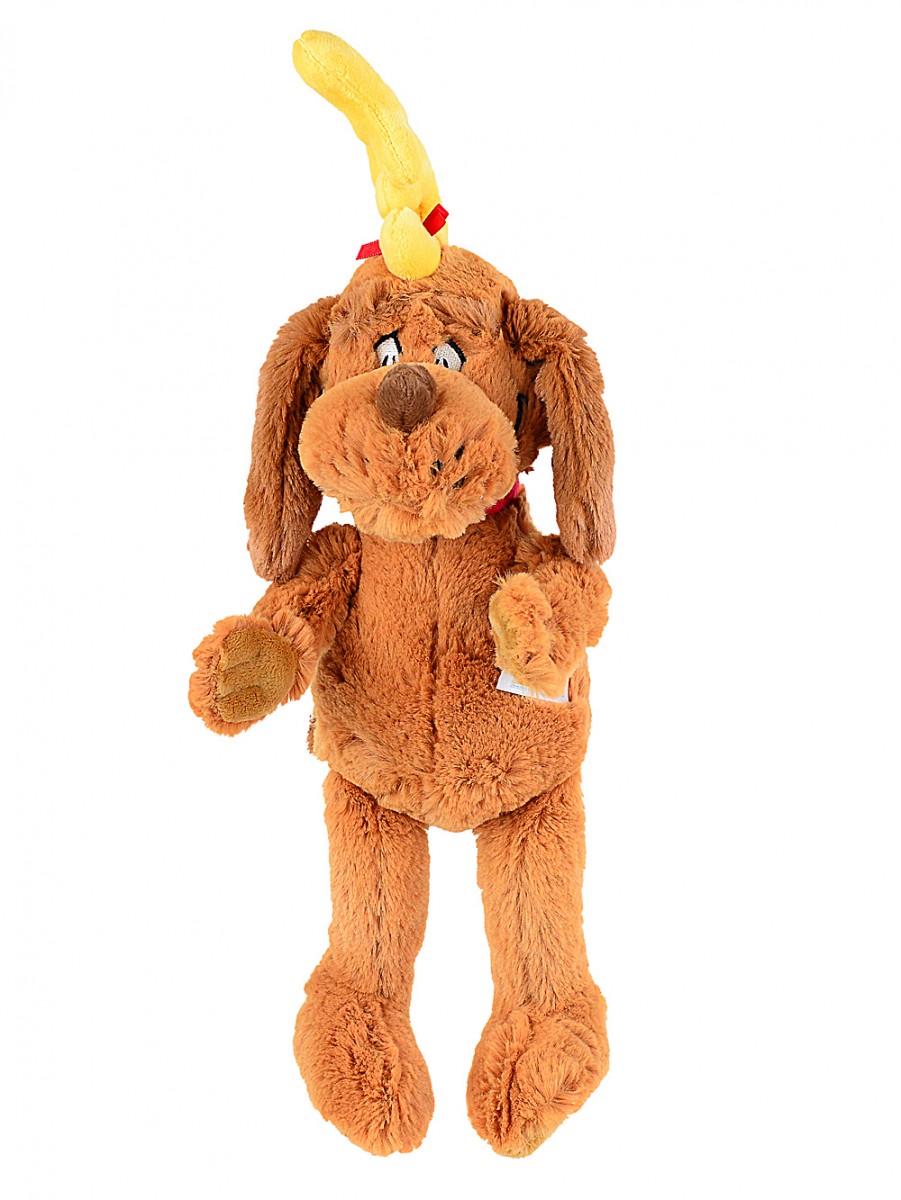 This plush toy, with dimensions of 12cm x 11cm x 40cm, showcases Max in all his festive glory. His soft and fluffy brown faux fur and big, floppy adorable ears are crafted to perfection, ensuring he's just as lovable and cuddly as he appears on screen. Adding to his holiday spirit, Max proudly wears a single cream reindeer antler, adorned with a bright red ribbon bow, transforming him into an imitation reindeer ready to spread Christmas cheer.