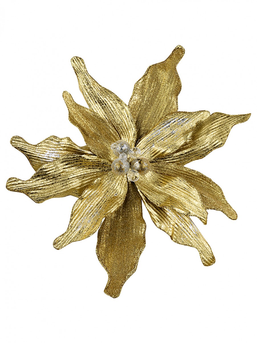 There's something enchanting about the glimmering gold bracts with their mix of smooth and distressed finishes. Each one is lightly wired for simple shaping - so you get natural-looking petals without any effort. The alligator clip means you can attach it to wreaths or garlands as well (or even make it the centrepiece of your floral arrangement). And those frosted baubles and diamante berries in the middle? Well, they really make you feel that extra festive excitement.