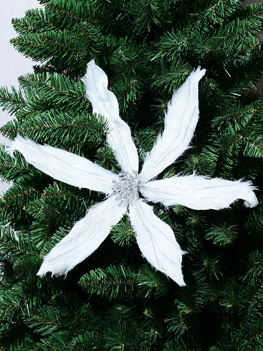 Measuring 40cm x 40cm x 22cm when spruced, each flower is just different enough to feel special. They're sold individually - great for mixing-and-matching with other festive blooms or on their own as a real showstopper. It's honestly stunning with snowflakes and icicle decorations, but we also like adding it to reds and silvers for a more traditional look. The extra-large petals make quite an impact from across the room, and there's something about the plush texture that feels both chic and playful - especially when you're decorating with family or friends.