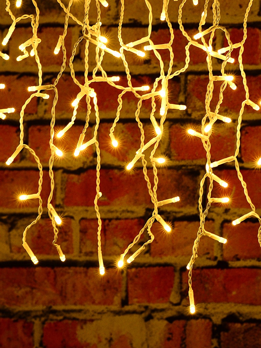 With warm white icicle lights that drop down in pretty strands like brightly sparkling gems and jewels along a continuous cable, this Warm White LED Icicle Light is a great way to decorate interior and exterior walls, fences, lawns, balconies, pavilions, patios or any indoor or outdoor space with hardly any time or effort, creating a festive and cheerful atmosphere for every party, celebration or special occasion from Christmas to New Year.