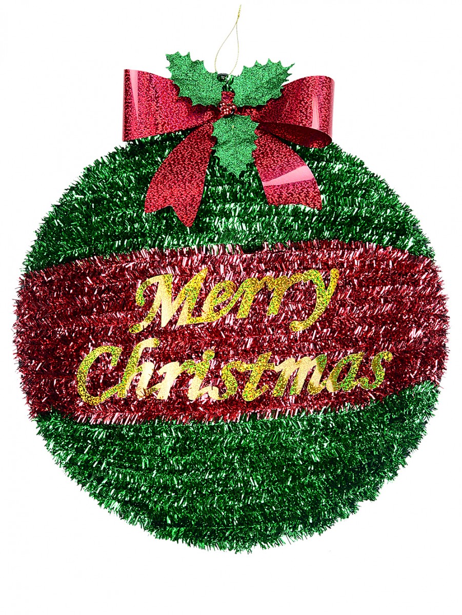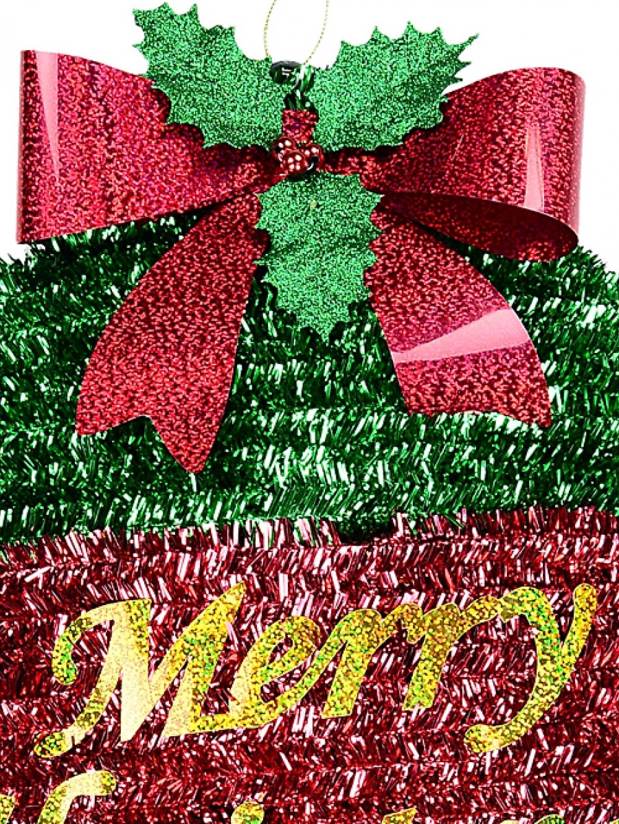 The plaque includes a red holographic bow, green glitter holly leaves, metallic red and white iridescent striped candy canes and even a metallic green present with a red ribbon and bow! And with dimensions of 43cm x 70mm x 46cm, this bauble tinsel plaque is perfect for hanging on your front door or even to decorate your Christmas tree.
