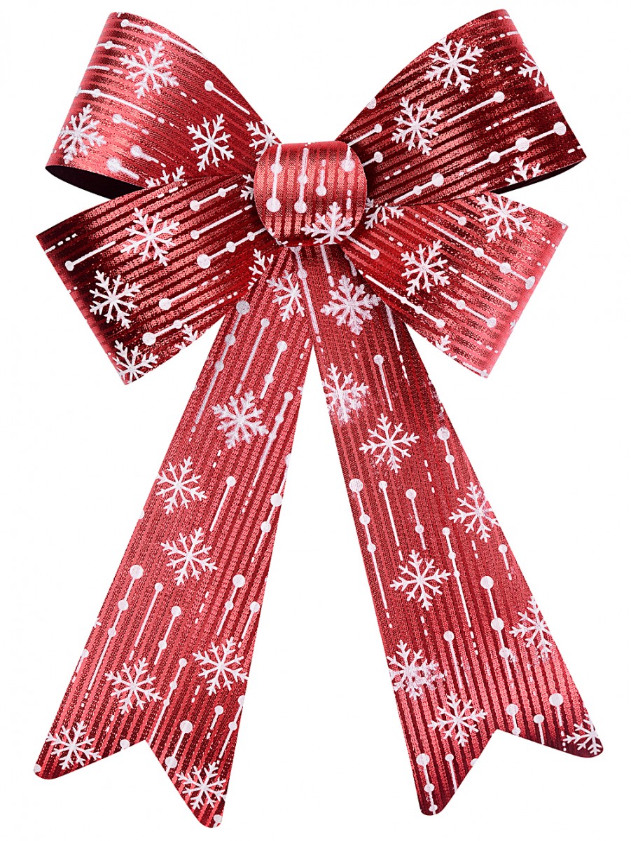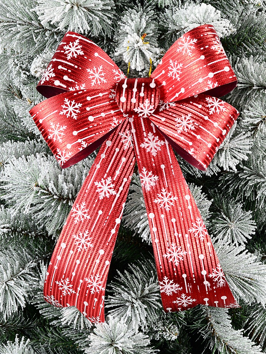 This Christmas bow is super easy to tie wherever you want, plus the polymer mould backing helps it keep its shape - even if you have little hands tugging at it! Covered in metallic glitter thread, snowflakes, and little straight lines with dots (almost like falling snow), it fits right in with other festive decorations. We pop ours onto garlands, trees, wreaths, and gifts for that extra bit of wow factor. Nothing says Christmas quite like a beautiful red bow - let's make some memories together this year!