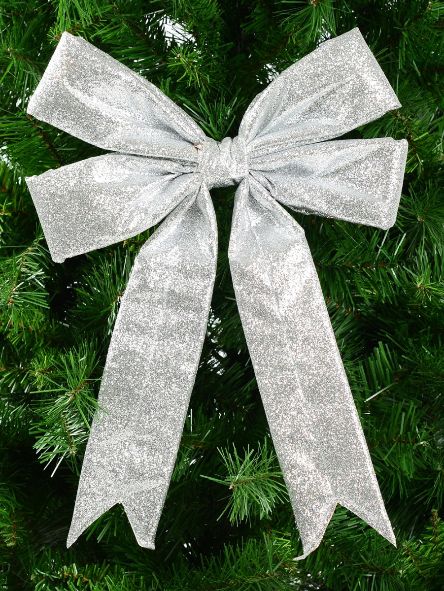Have your home, work, business and other spaces decorated with a festive Christmas glow when you make the smart decision of placing your order for this Large Silver Glittered Bow Display Decoration right now while it is still in stock. This Christmas decorative bow stands out from the others on the basis of three things. The first is that it is made through the use of premium quality fabric material. The second is its large sized design measuring 43 centimetres in length, 40 millimetres in width, and 46 centimetres in height. The third outstanding feature of this Christmas decorative bow is its choice of classic silver palette and the silver shiny glitter that covers the bow entirely!