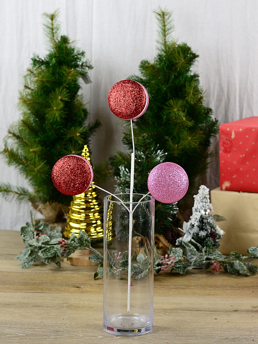 Christmas is all about sprinkling a bit of magic on everything, isn't it? And there's nothing quite like our 46cm Macarons With Red & Pink Glitter Cookie Shells Long Christmas Stem for giving your festive display that special touch. These confectionery spray picks look good enough to eat - but just quietly, they're not edible! Each stem boasts three fabulous macarons with sparkling red and pink glitter shells and a gorgeous white filling embellished with silver glitter - the little details are what make them so lovely.