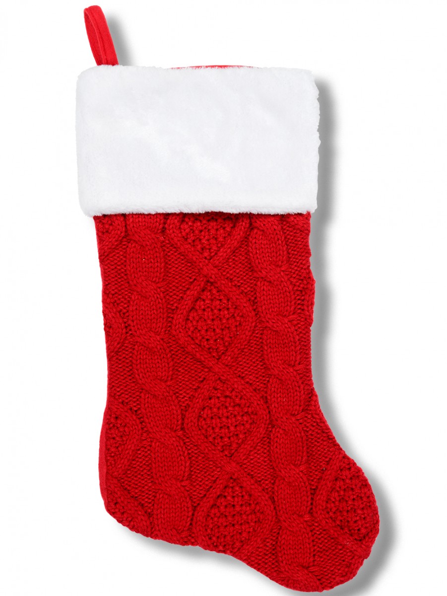 Oh, there's just something about a classic Christmas stocking hanging by the fireplace or sitting under the tree that makes the whole house feel ready for the season. Our 48cm Red Twisted & Trellis Cable Stitch Pattern Look Stocking With White Cuff is exactly what every festive home needs - it's a real showstopper. It just has that extra bit of charm - you get the bold red soft knit and the snowy white cuff, plus this really eye-catching cable stitch pattern.