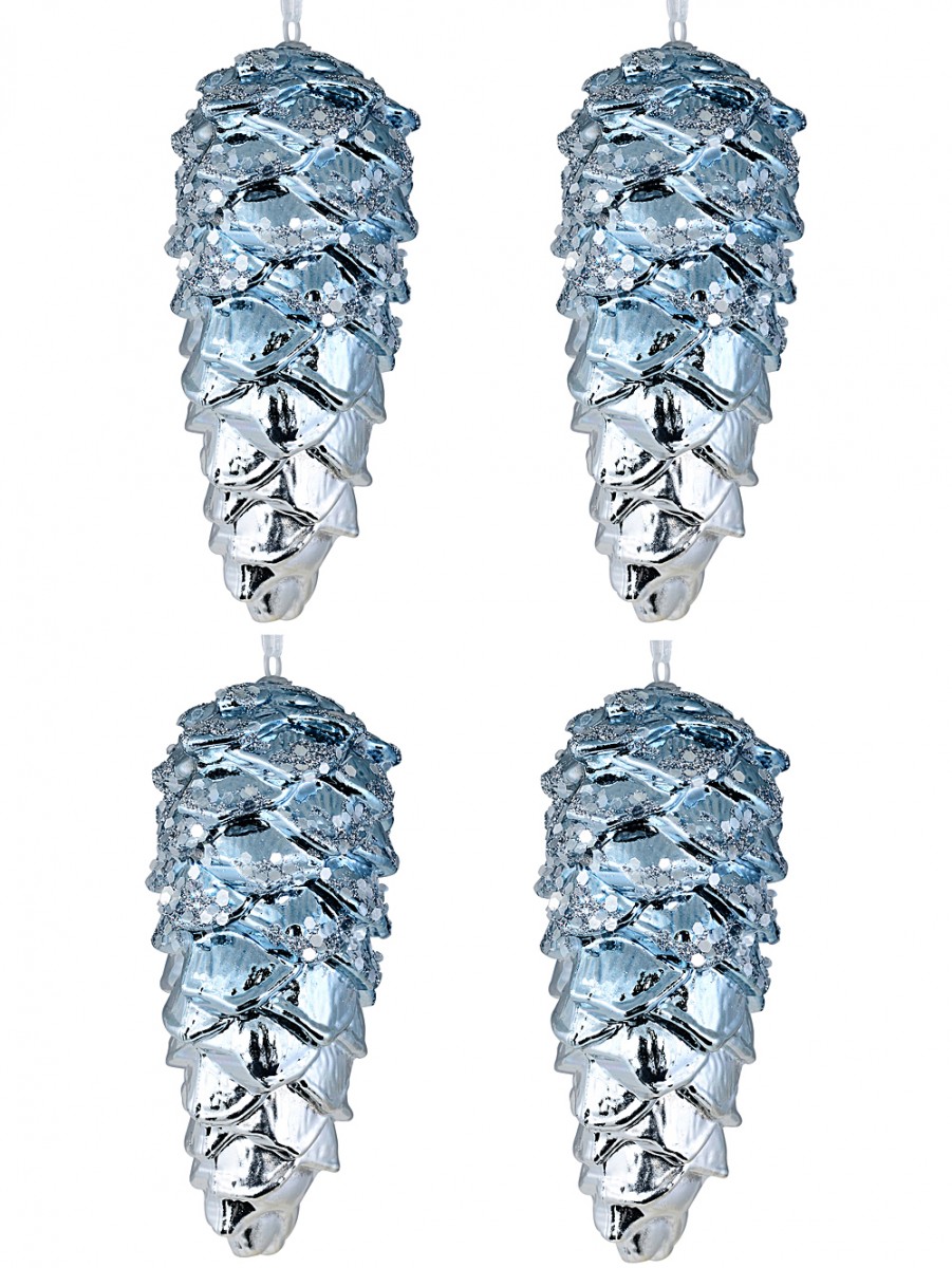 Each pinecone comes with a white mesh string loop to make it that much easier to add to your decorations. At 45mm x 45mm x 11cm, these little beauties have enough sparkle but won't overpower the rest of your ornaments. The colour palette of blue and silver fits perfectly with most decorations - it goes with gold, red, green and everything in between. The glitter is hand brushed and yes, it is normal to see some excess fall off during the first use - a tip from us, use a small soft brush to get rid off excess. Trust us when we say these faux pinecones bring Christmas magic alive!