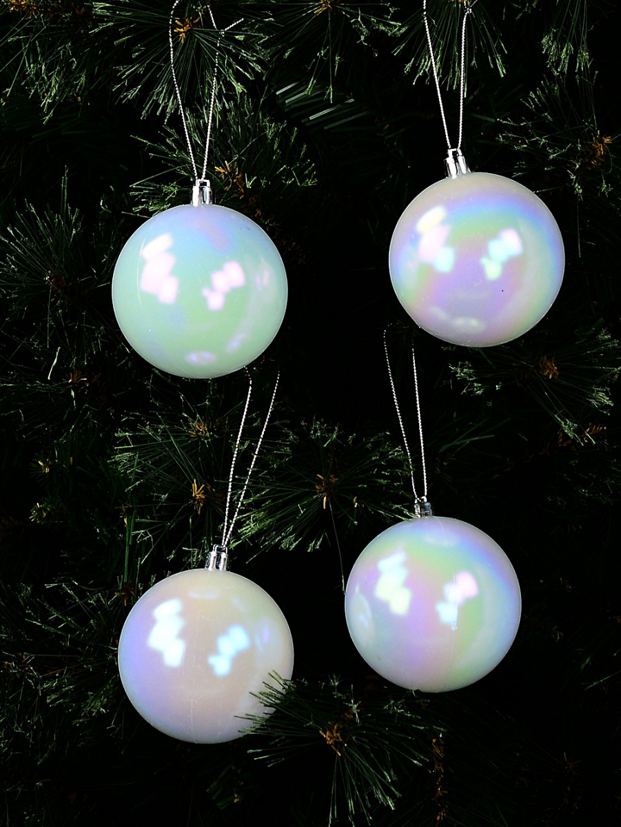 Each bauble, measuring 80mm x 80mm x 80mm, boasts a captivating white matte finish, beautifully enhanced with an iridescent tint that makes colours dance and shimmer with every shift in light and angle. This unique feature allows light waves to combine, resulting in a mesmerising play of colours that bring a magical quality to your Christmas tree and festive decorations.