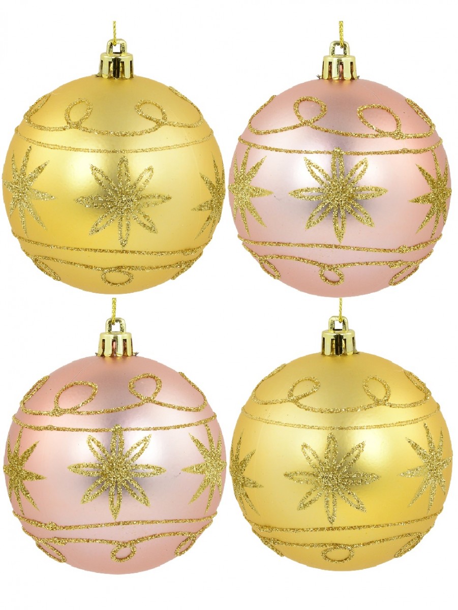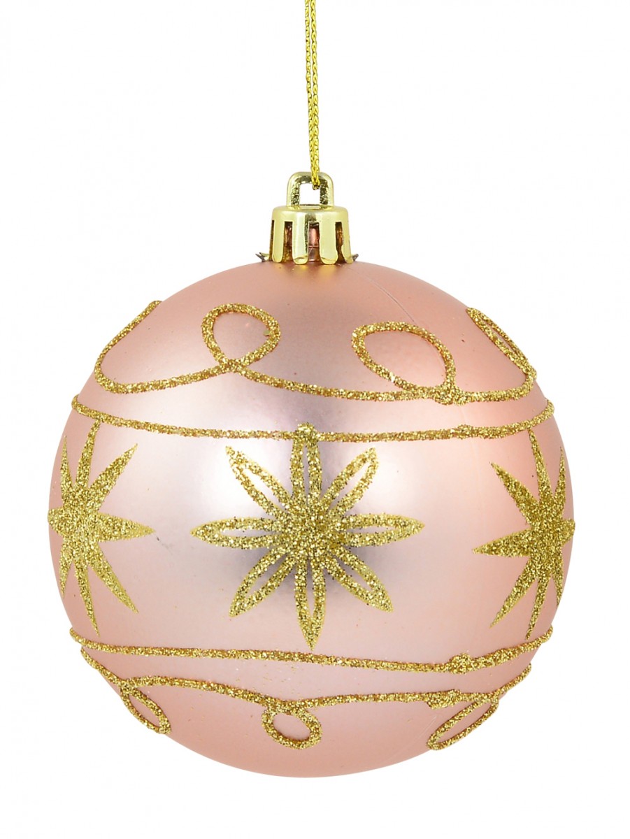 The magnificent design of this Pink & Gold With Gold Glitter Star & Swirl Pattern Baubles has a motif which is representational of the personality of Christ and also of the gift of gold that one of the three Wise Men from the East gave Jesus upon his birth. Now imagine such a symbolic ornament hanging on your Christmas tree this Xmas? It is simply going to be magnificent!