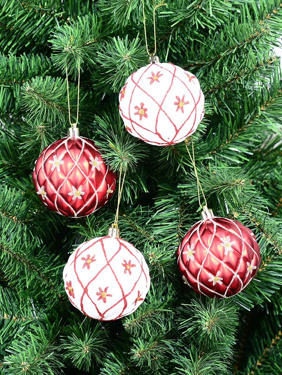 They come in packs of four, featuring two white and two red baubles. They're shatterproof (so, bonus points for no more tears if one drops!), and we find they work beautifully mixed with reds, golds, silvers, or even bold metallics - let your imagination run wild really. There might be a bit of extra glitter at first when you unpack them, but that just means they'll shine even brighter once they're up on display.
