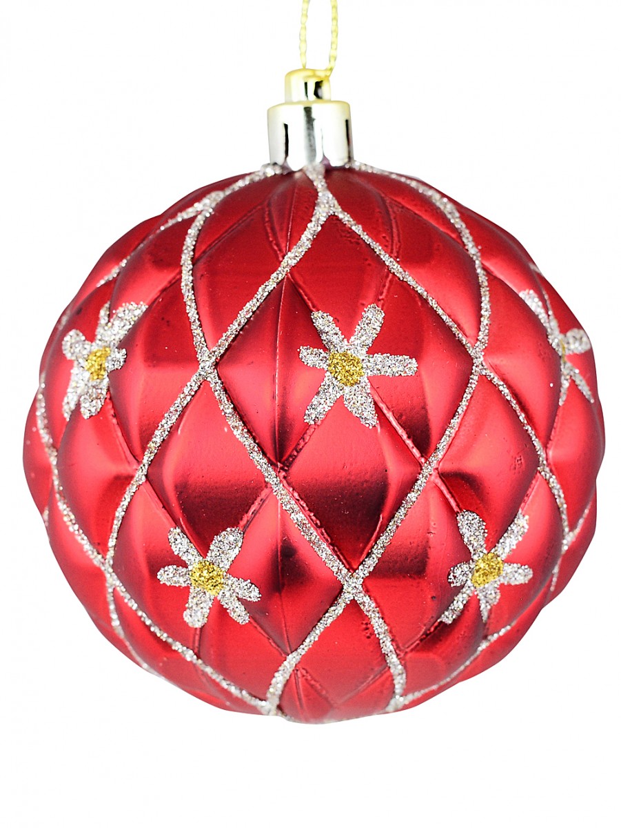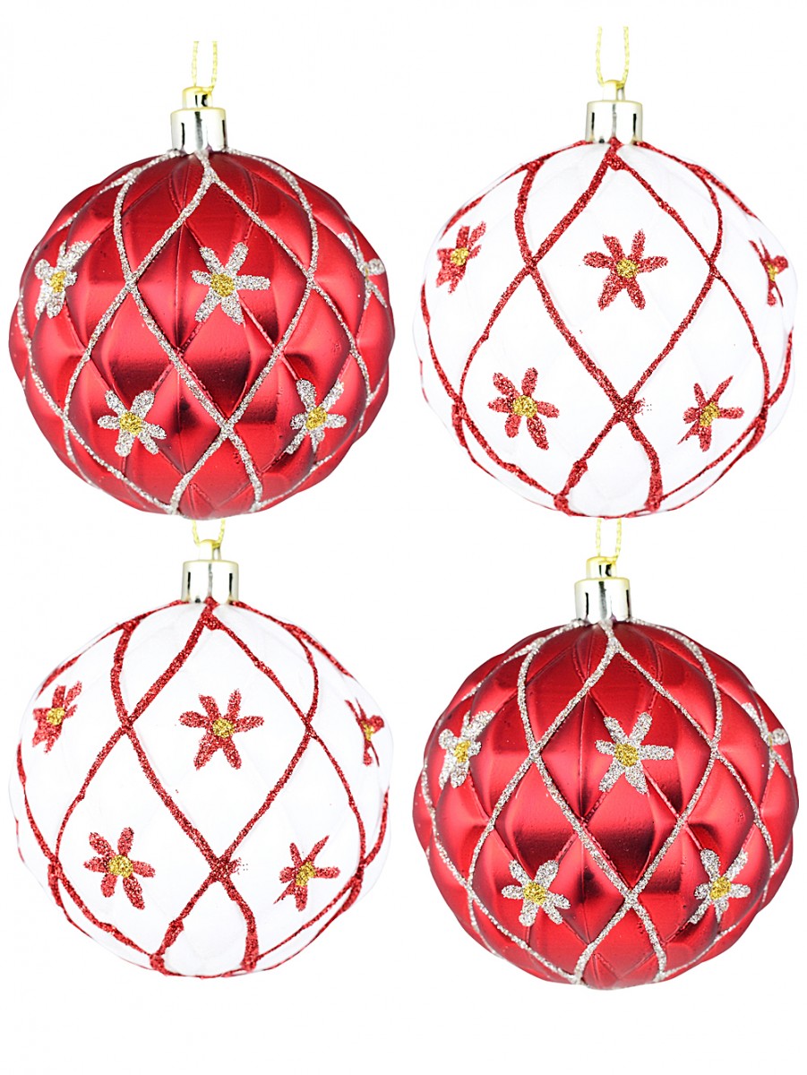 With their bold sphere shape - 80mm x 80mm x 80mm to be exact - they stand out on any tree. Each bauble is carefully detailed with either white textured diamond patterns or red, all decorated with glittery lines and starbursts with gold centres. The flower ends and diamonds give them loads of interest. And we're obsessed with how the gold hang string gives them an extra touch of elegance.