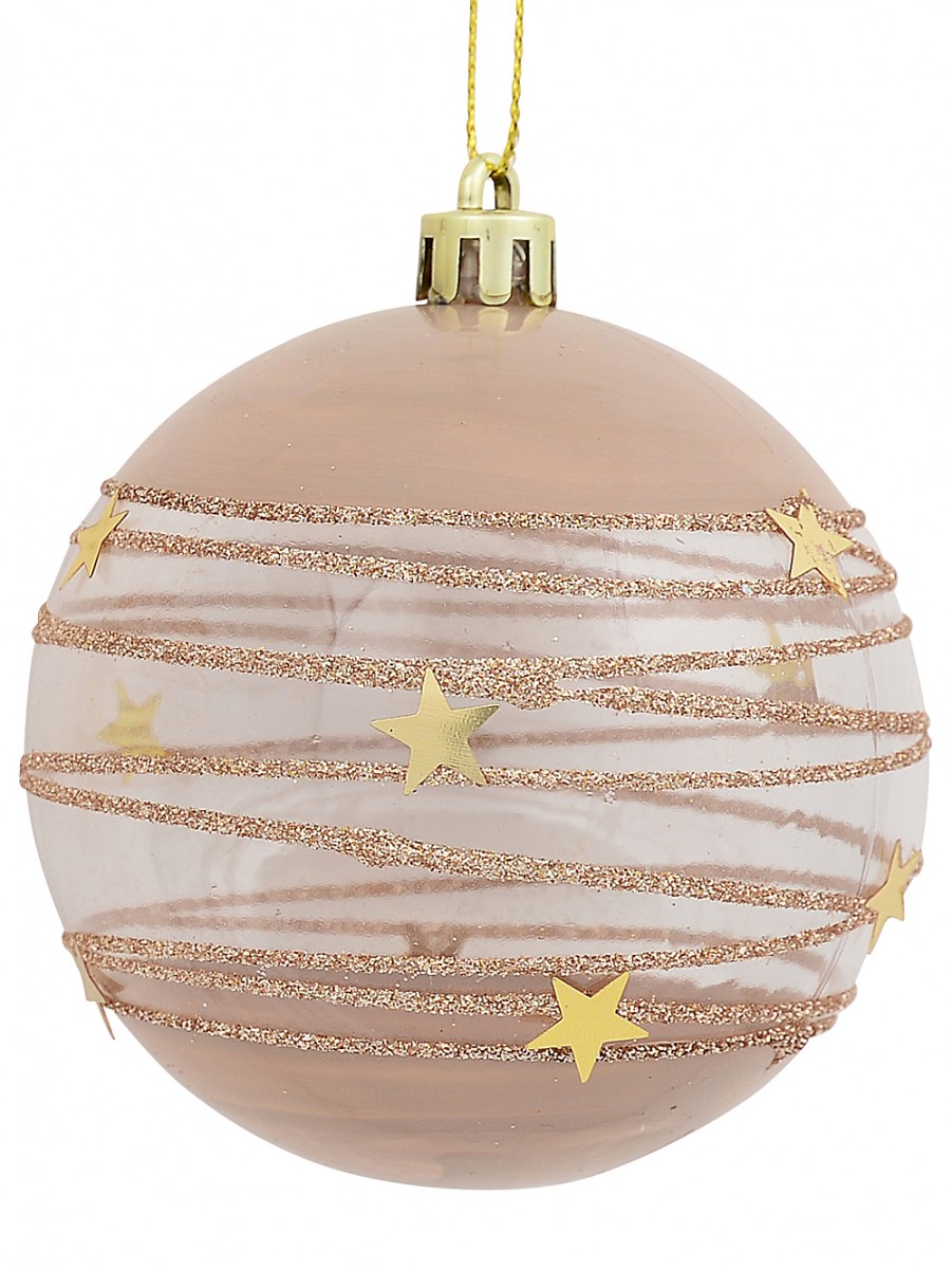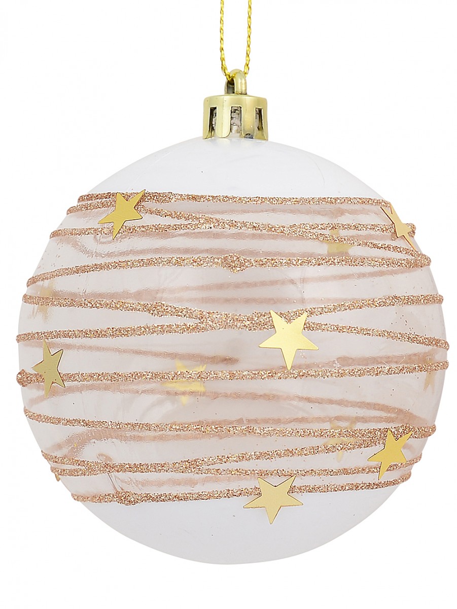 With each of these Taupe, White & Clear Baubles With Gold Stars & Glitter Lines made in the same spherical shape and measuring about the same in size, you have the chance to celebrate Christmas in a much more festively charming way this coming Christmas! It is sold as a pack consisting of four baubles each of which comes with gold coloured short chain through which each of these baubles can easily be hanged on Christmas trees and wherever else you wish to ornament with a tinge of gold glitter.