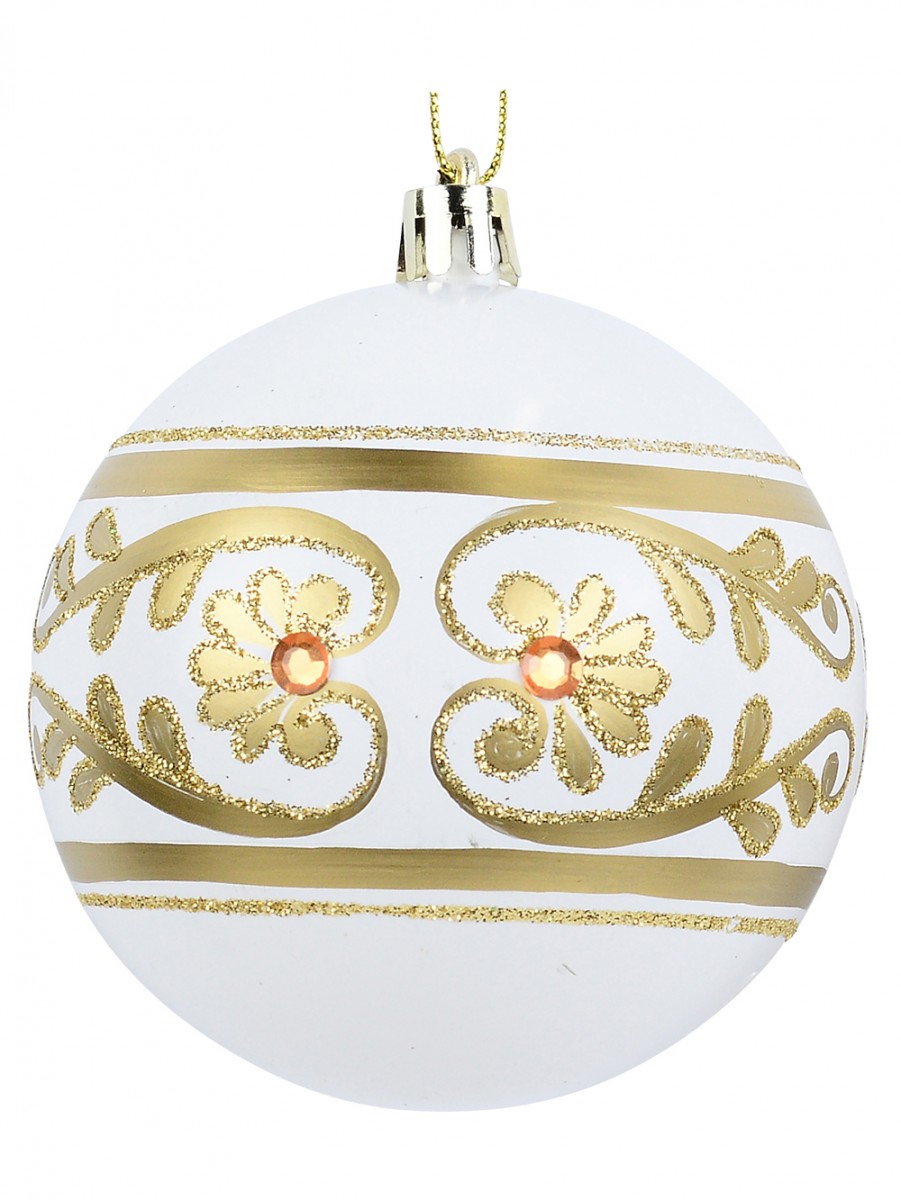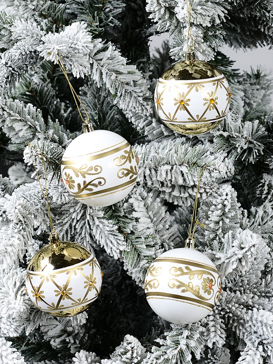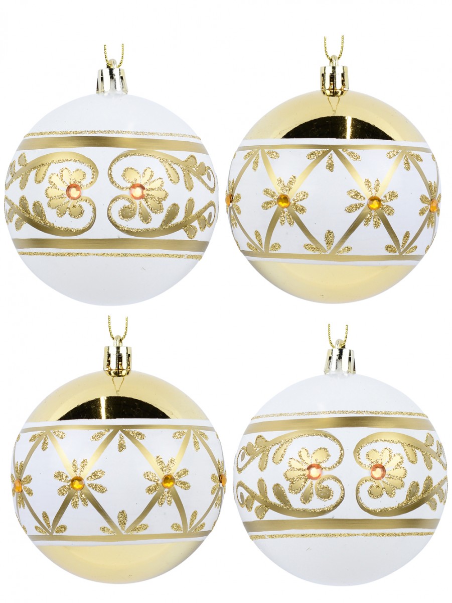 White Baubles With Shiny Gold Filigree & Teardrops In Diamonds are not merely ornaments; they are statement pieces that enhance the visual allure of your interior. When used as a collection, they elevate your decor to a more refined level, adding an exquisite touch that draws attention and admiration. Create a bold statement by incorporating these gorgeous baubles into your Christmas trees, wreaths, garlands, and floral arrangements, allowing their charming patterns to infuse a touch of magic into your holiday decor. The atmosphere you create will be cherished and remembered for years to come.