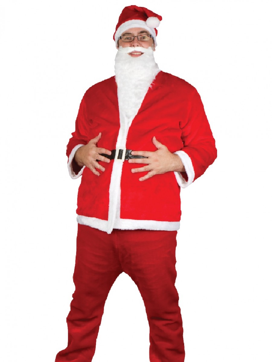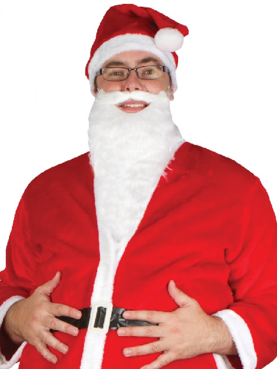 Red classic Santa costume with white faux fur trimming & beard