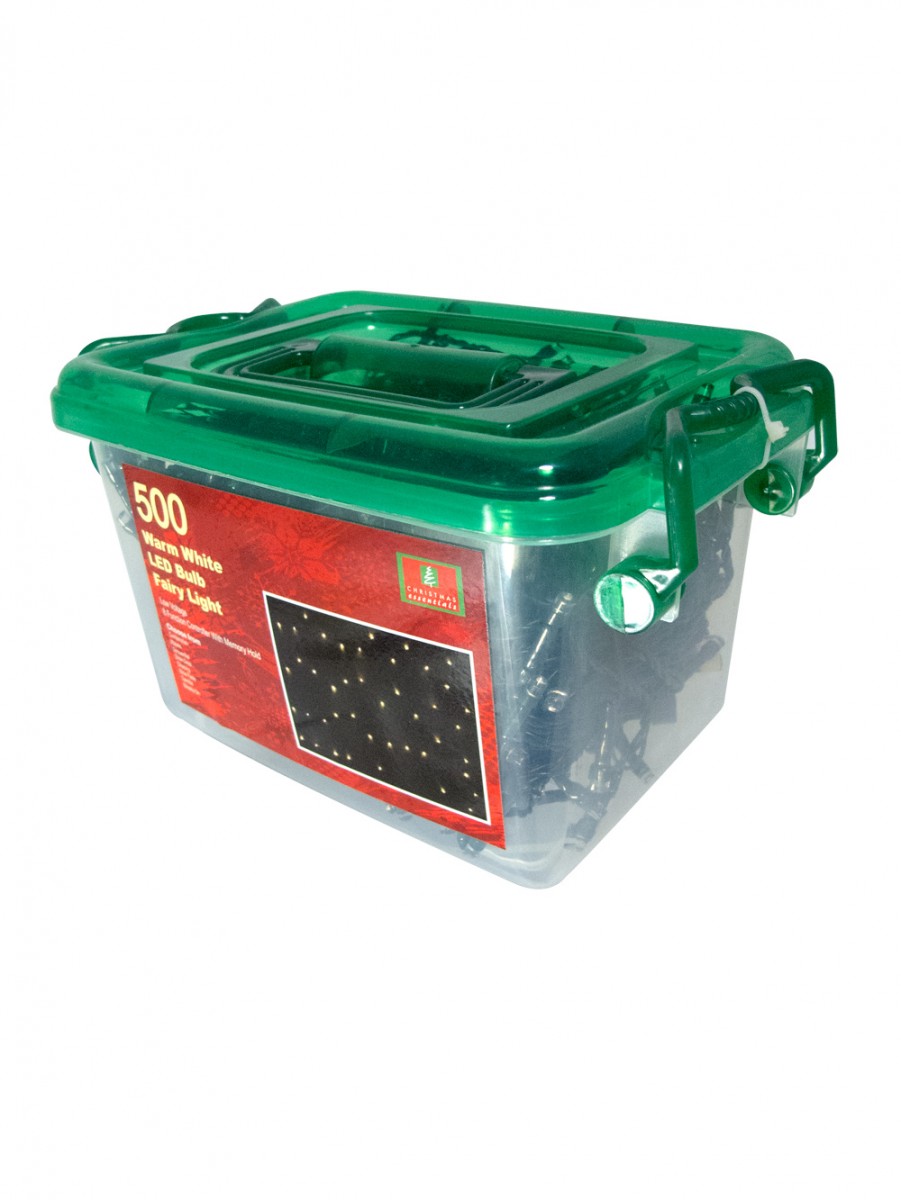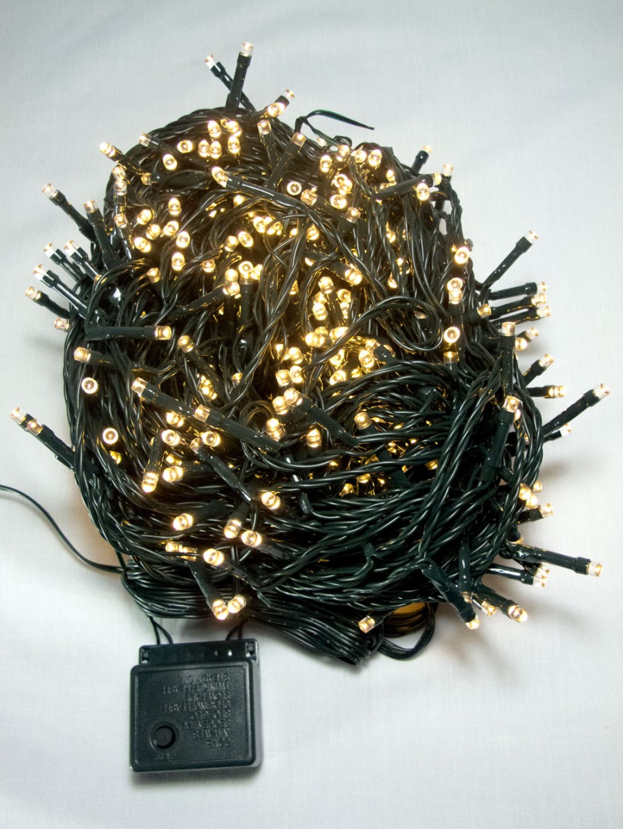Our 500 Warm White Twinkle LED Bulbs light strand can be used in a straight line or clustered around existing landscape. You can loop them to create icicles, or you can create circles for your front door. Drape them in trees or over bushes. You can even make them into letters that extend holiday greetings! The 500 bulbs will twinkle alternately when turned on and work independent of each other so there's never a need to fuss over a single burned out bulb. When the lights are turned on, green wire casing virtually disappears against the background.