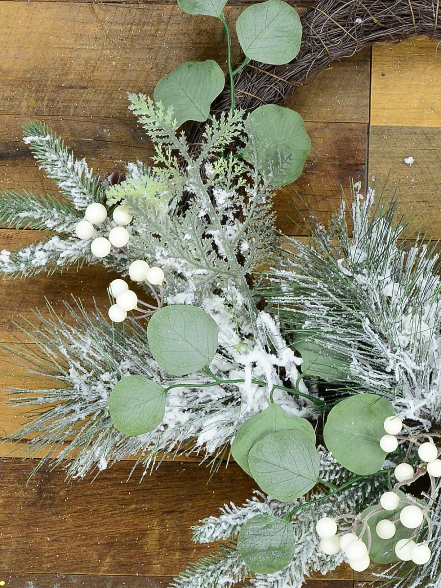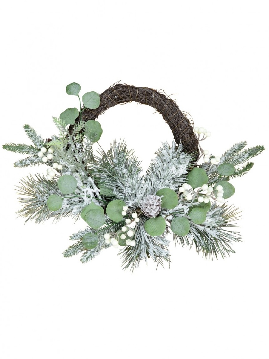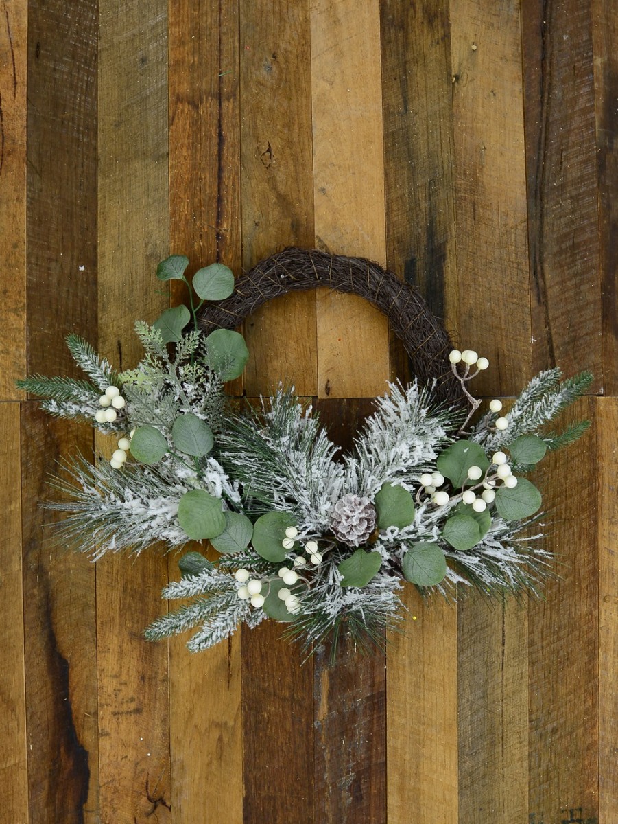 What do you think of when you hear 'Christmas wreath'? You must probably be thinking about the traditional circular wreaths made of evergreen leaves and foliage hung on doors. But that is not the only design possible. This wire spun Christmas wreath is a fantastic example of just how creative you can get with traditional wreaths. The basket-like wreath has mixed floral foliage that has green bottle brush, brown pines cones and other greenery besides the white snowberry stems and leaves. The frosted effect gives it an authentic look and feel as a wreath out in snow. The silver fabric loop allows for easy display so you can simply unpack and hang on your doors, mantle and windows. Because the materials used are long-lasting, this will be a one-time investment so get this wreath with the most innovative design home today.