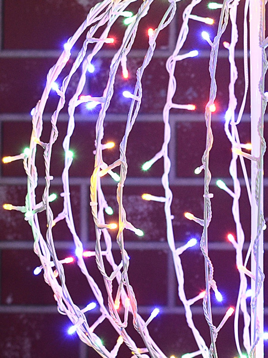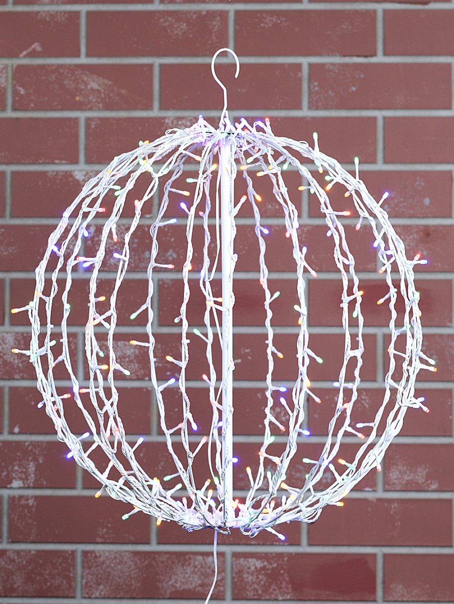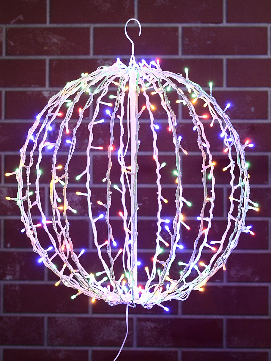 Our hanging sphere string light display can transform any space into a magical and festive wonderland. Its neon and vibrant colours can also breathe an eclectic trend into your interior decor. When illuminated, these lights create a mesmerising cluster of light points that twinkle and dance, resembling a celestial fireworks display. This enchanting effect adds a touch of magic to both your indoor and outdoor decor. This display comes with a mounted frame and a large hook loop, making it effortless to hang whether it's in your garden, on a porch, or indoors. You can fill the hollow interior of the light ball with ribbons, bows, or other decorative items to customise the scene to your liking.