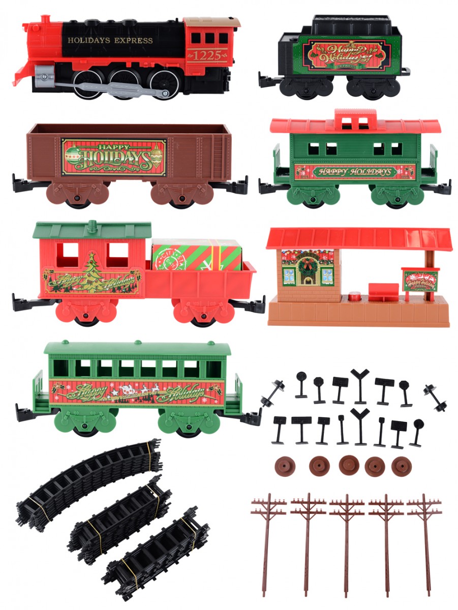 Total set includes one locomotive, five carriages, twelve curved tracks, ten straight tracks, station, signs and posts - all up six metres of track to experiment with! Assembling is pretty straightforward but we recommend taking your time over hot chocolate or mulled wine for maximum holiday vibes.